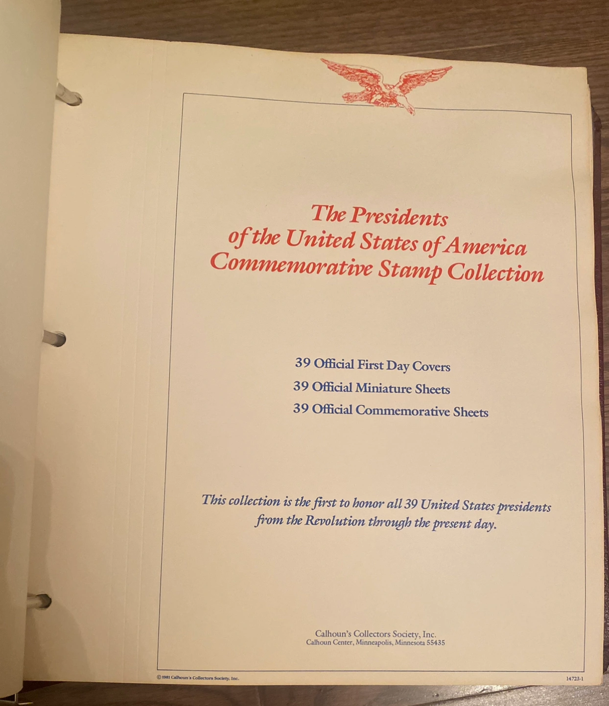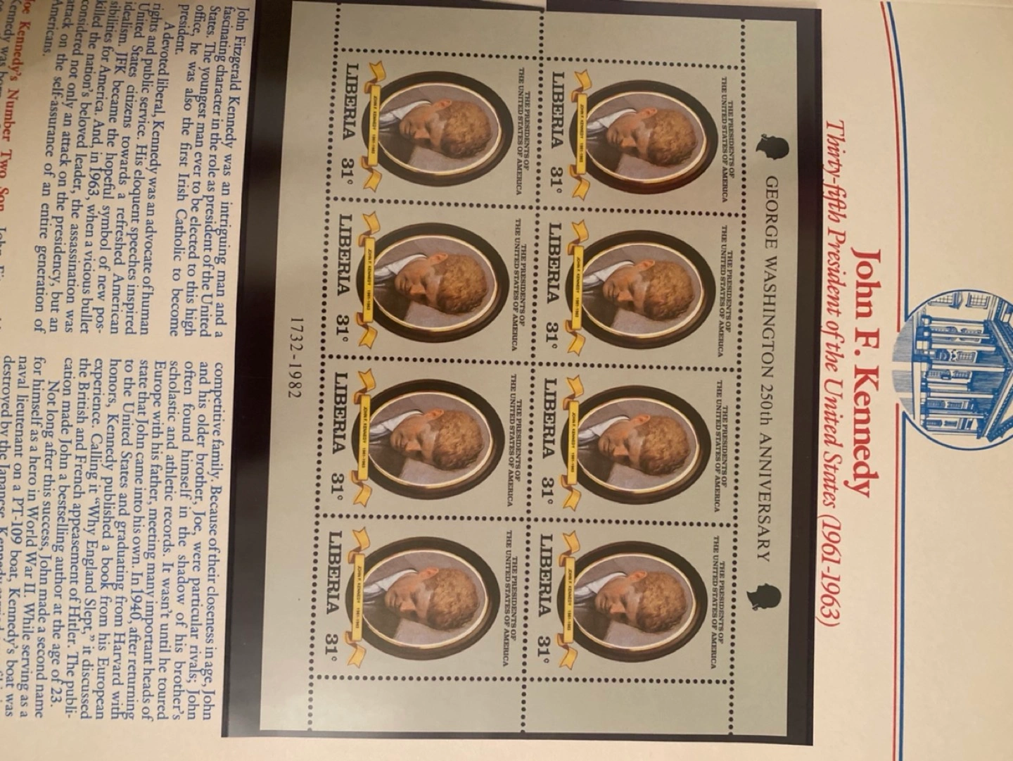 Presidents of the US Stamp sheets, First Day Cover collection π