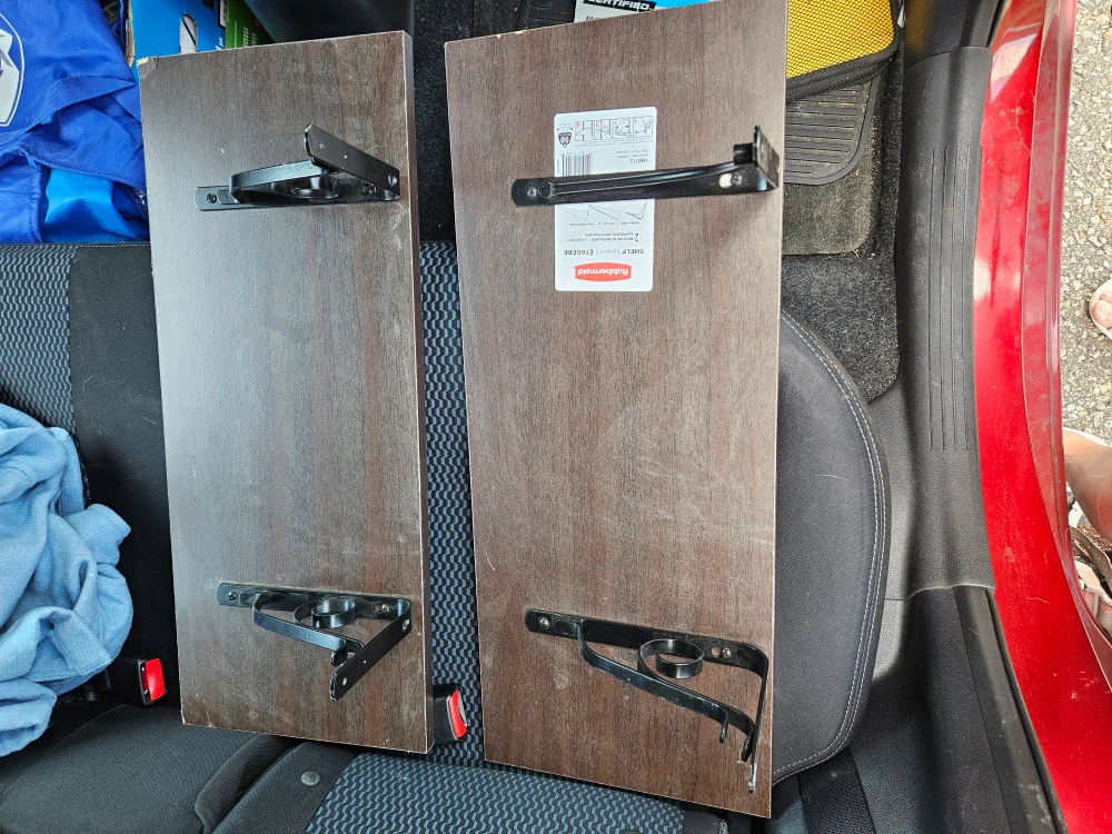 Two shelves with brackets. Great for a small bookshelf or an organization solution. They are used with a few scratches and a dent on one piece, but it doesn't effect the usage. Pick up only in Malton area of Mississauga (Airport Rd and Morningstar Dr).