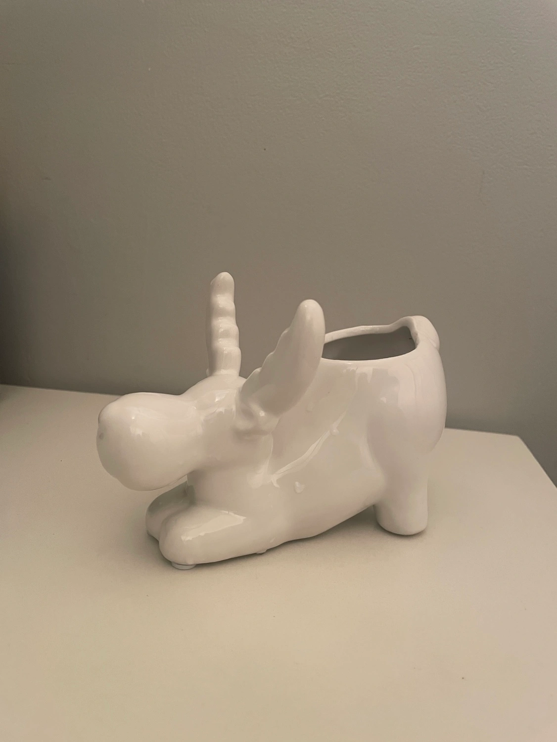 440A white ceramic planter shaped like a moose. Perfect gift for all you small plant lovers. Originally used or a small jade plant. More recently used for a cactus.