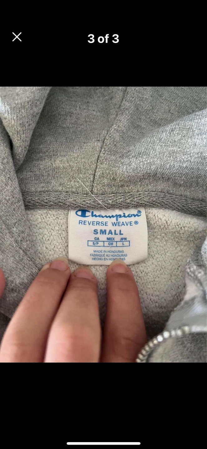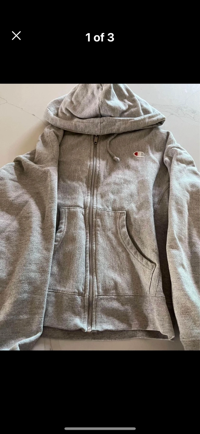 Grey Champion Reverse Weave zip up hoodie with a small logo on the front. Size Small. Pick up Etobicoke