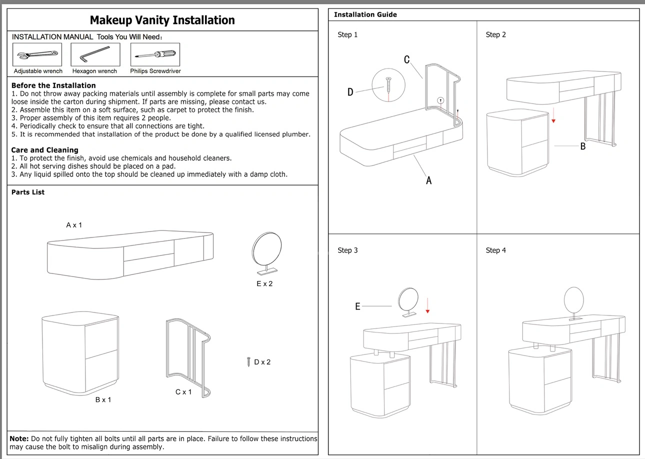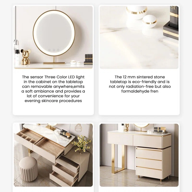 Modern Vanity Set with Mirror and Stool