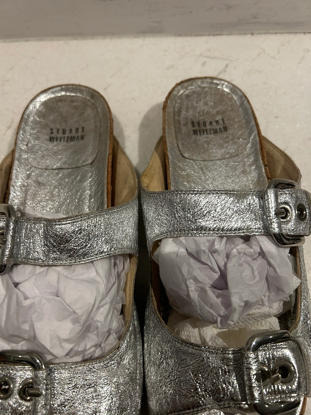 308Silver leather sandals with cork soles and double buckles. The sandals are in a slip-on style. So cute silver silver leather and cork weitzman double buckle sandals. Size 8. Adjustable buckle. Gorgeous textured leather material. In very good condition. Some wear on the bottom but could be cleaned up to look new. These have such a cool upscale Birkenstock style. The colour makes them extra special. Retailed for $250 Please scroll through my listings for a great selection of designer fashion, trendy fashion, high end skincare and makeup and beautiful kitchen and homewares. Always adding new great items so please follow and take a look! Bundles: if you buy more than 2 items, I may be able to discount your bundle further, depending on the items. Please ask.