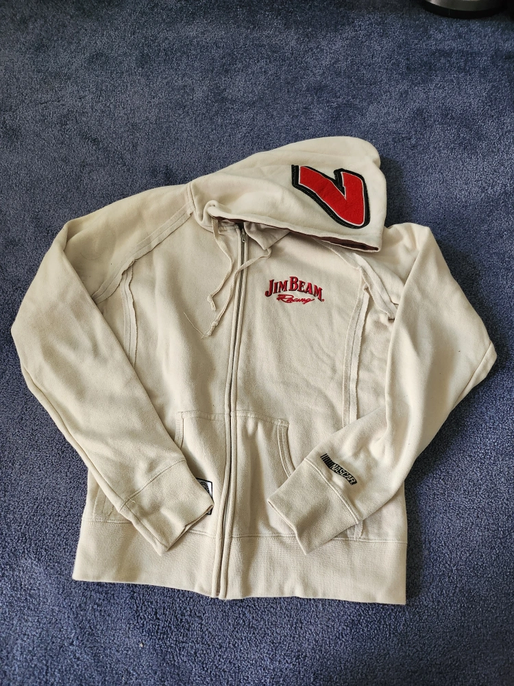 Beige Jim Beam sweater. On the smaller side of Medium. Like new.