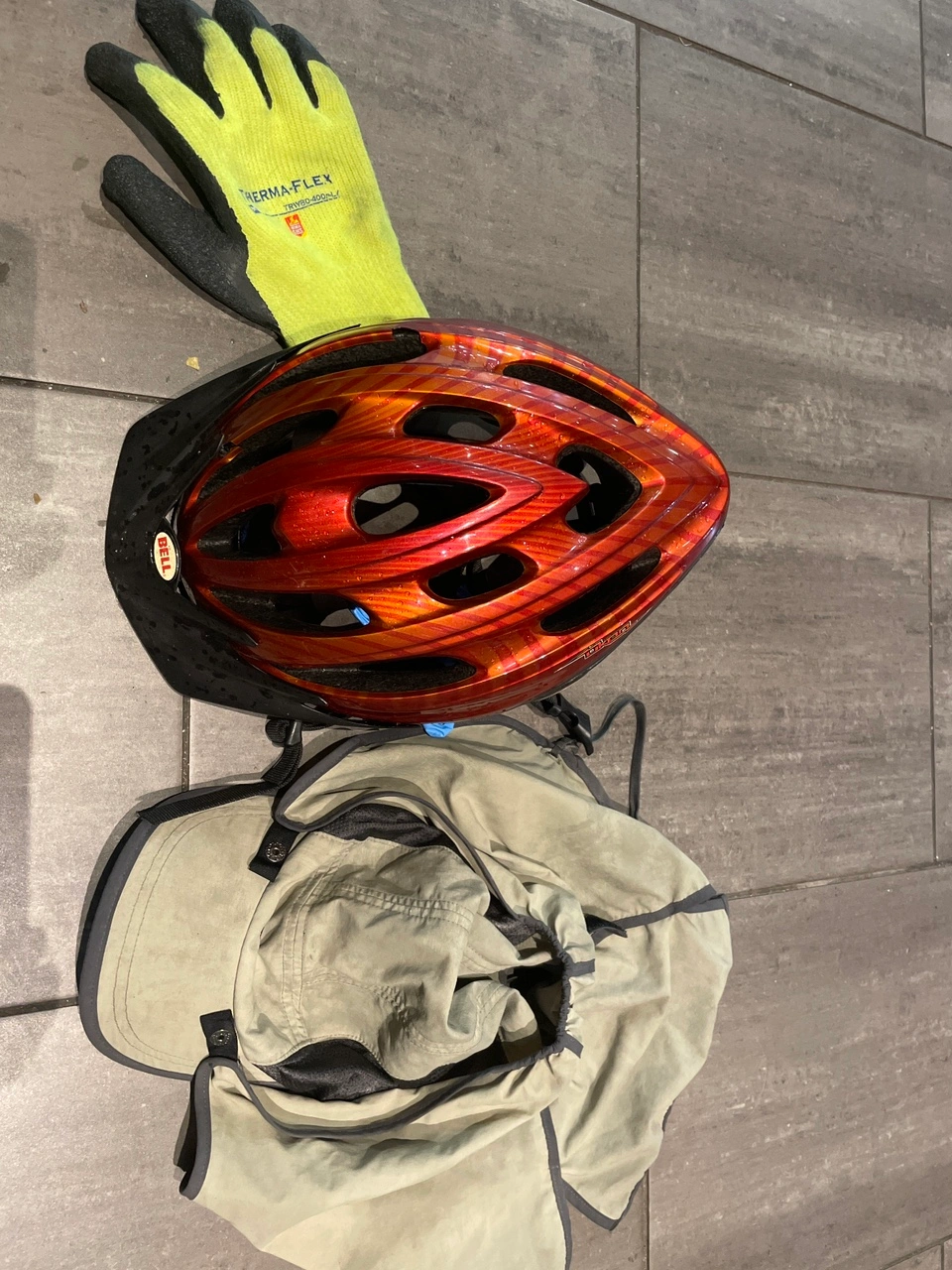 161Red bike helmet and a green hat. Both are in good condition. Sold together.