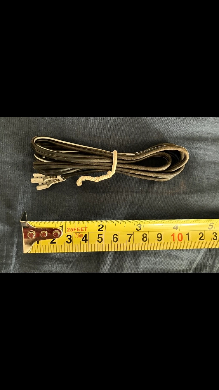 Black speaker wire with quick connectors. I don’t know if they work, but they’re free to anyone who wants this.