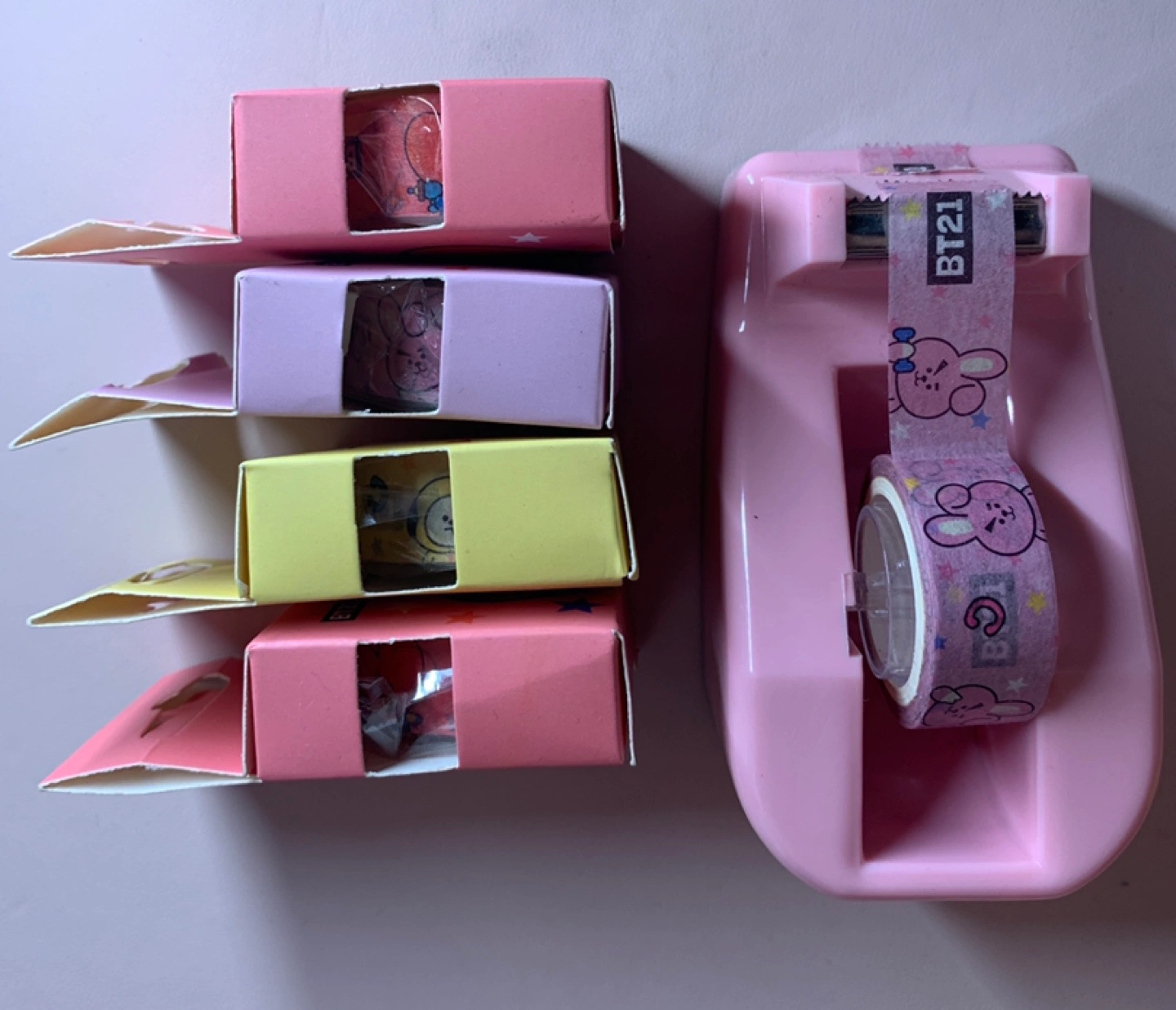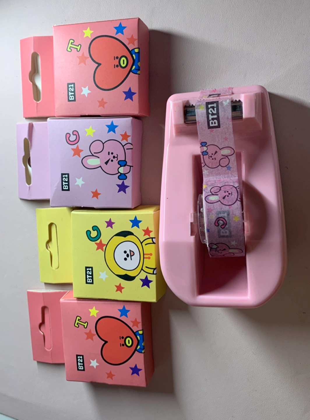 Set of 4 BT21 Washi Tape Rolls. There are 2x Tata, Chimmy, and Cooky tapes.