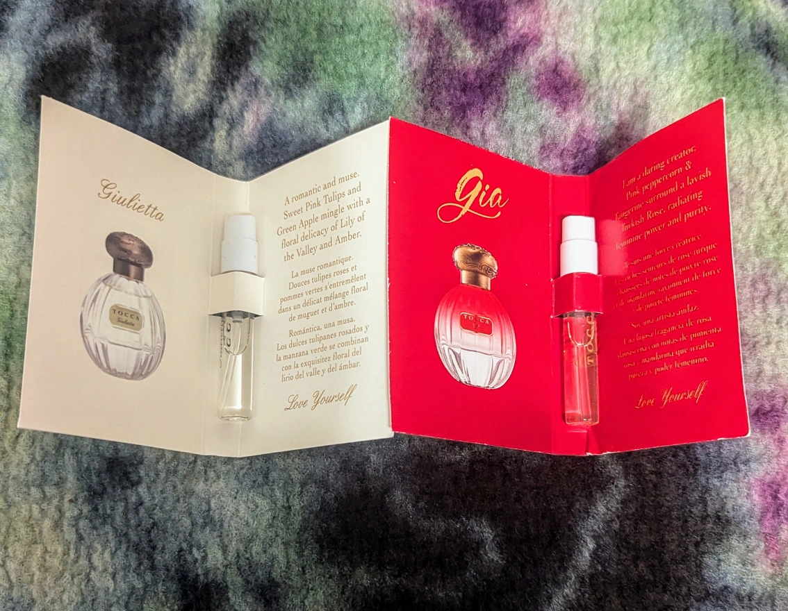 Brand new and never used. Tocca perfumes, Giuletta and Gia. Eau de perfum, 1.5ml each scent.