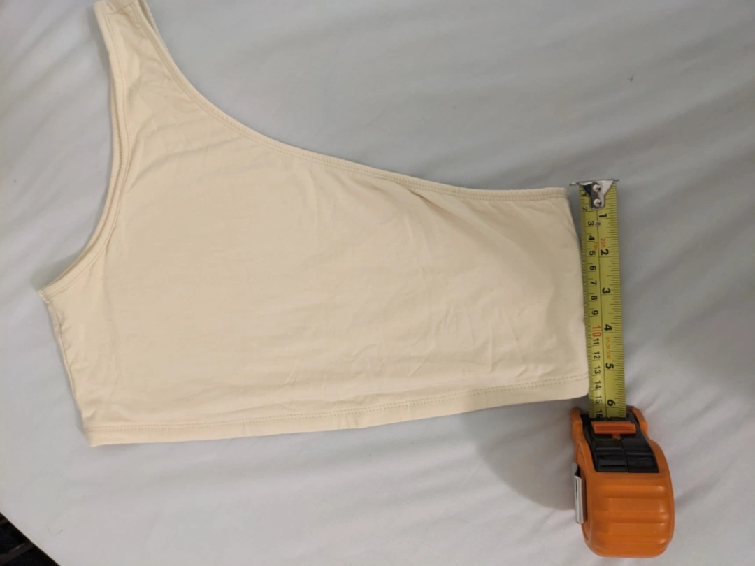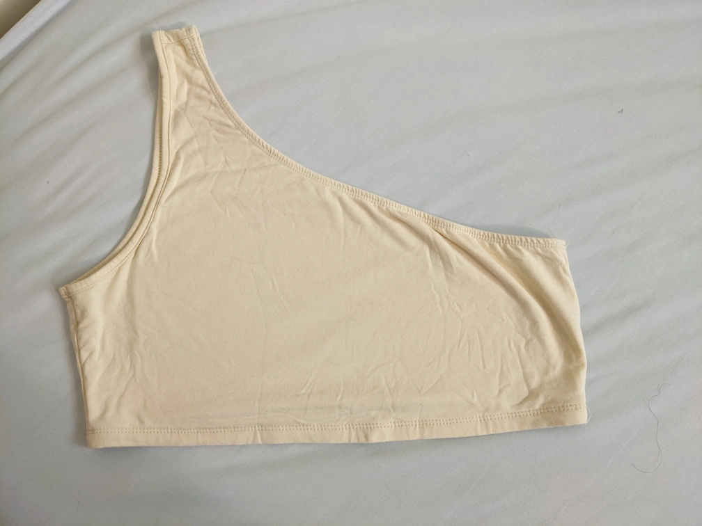 Cream coloured one shoulder crop top. It has a stretchy fit, is lightweight, and soft material. It is a perfect summer top! - BUY ONE $5 ITEM AND GET ANOTHER $5 ITEM FOR FREE!