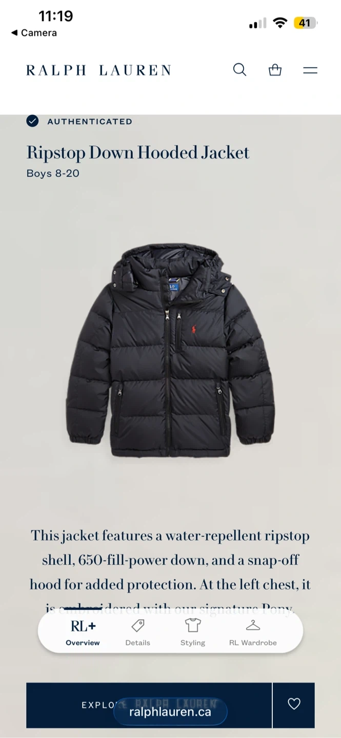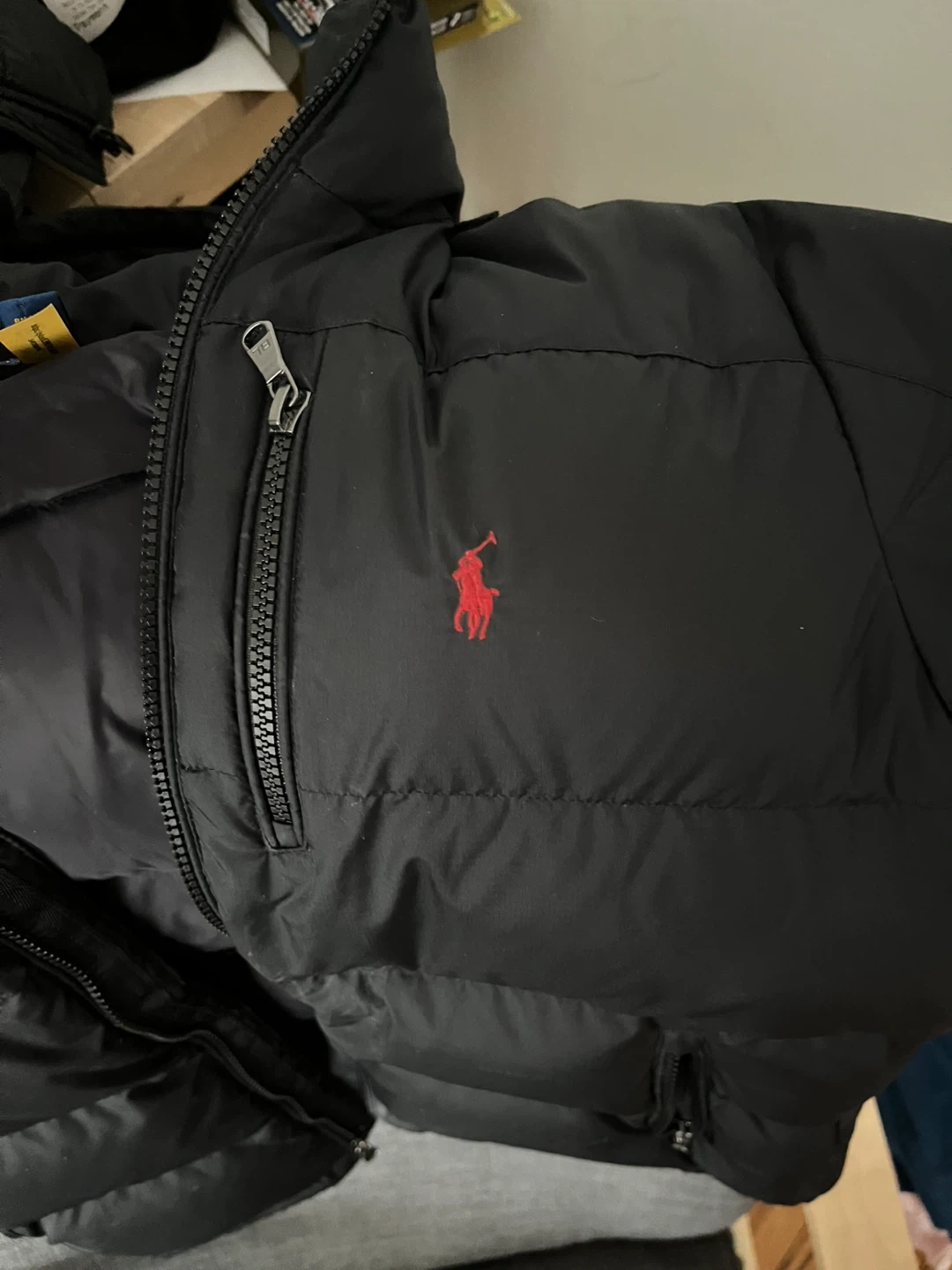 Ralph Lauren puffer jacket in black with a hood. The label says boys size 14 to 16 but my son grew out of it when he was 12. It is in excellent condition and is a very high-quality jacket. Purchased for over $200, selling for $70.