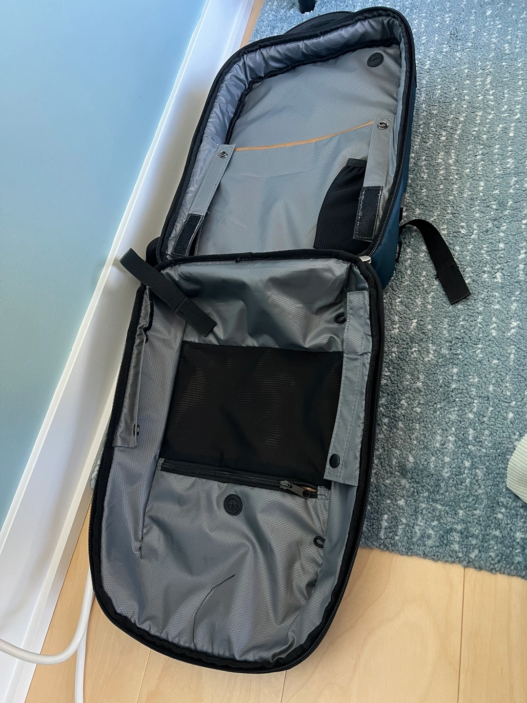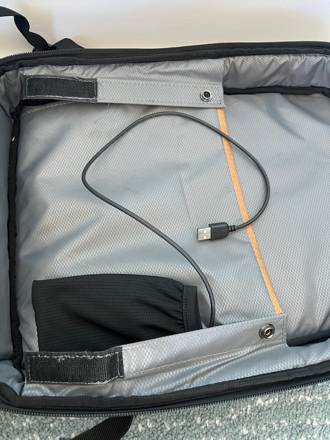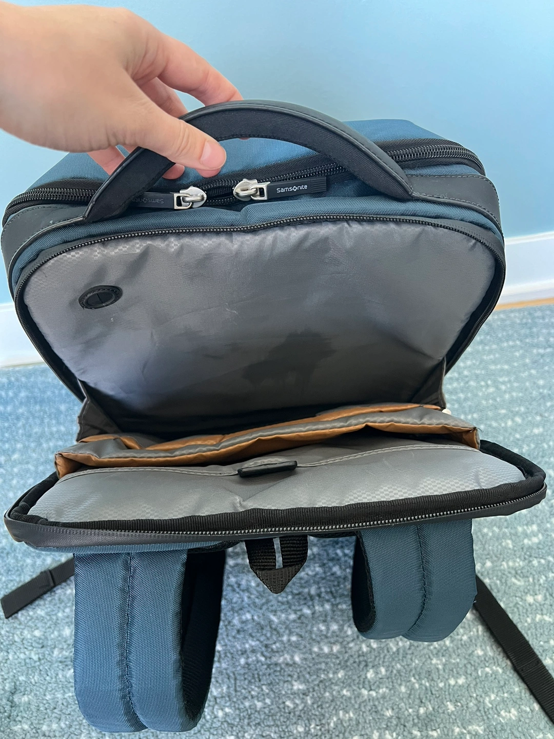 This Samsonite bag has two large compartments enough for multiple laptops and a large middle space for clothes or other items. It comes with a battery and charging cable that I have never used. It opens up to be a carry-on bag. There is a large stain on the inside of the bag (see picture 6) and the front zipper is broken (see picture 7). Will drop it off anywhere in Vancouver for free.