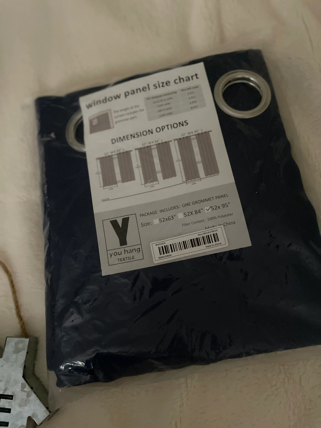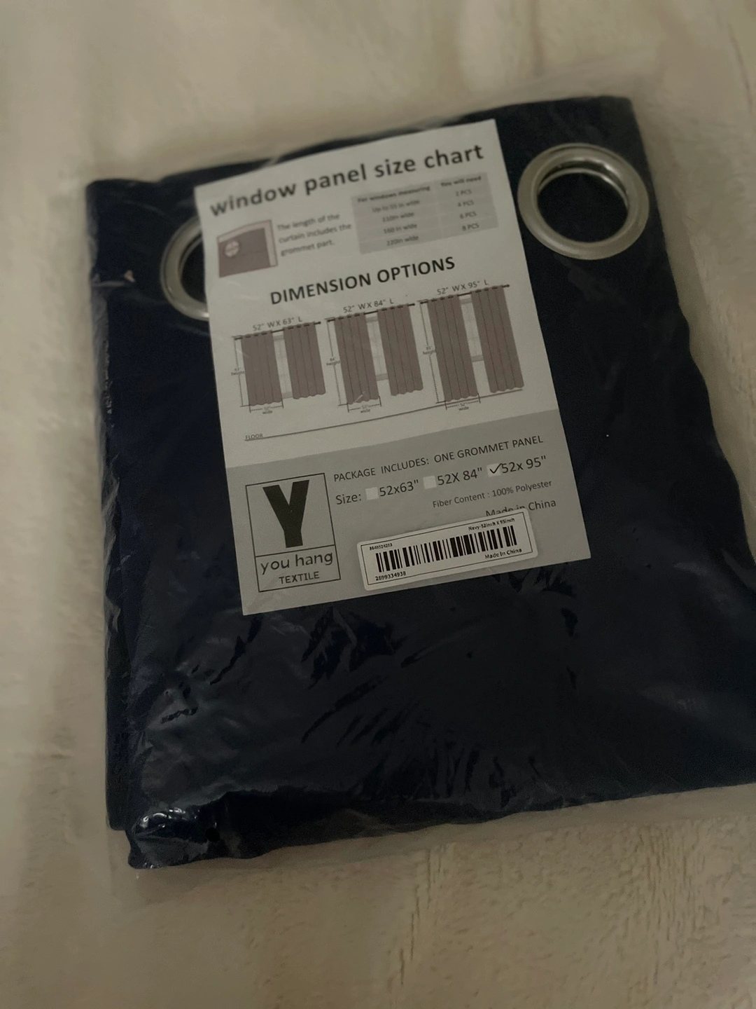 137One navy blue blackout grommet curtain panel. Size: 52x84"