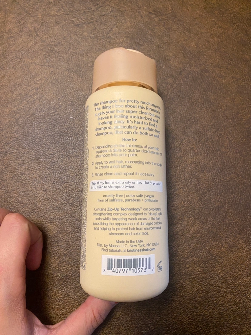 Brand new bottle! Conditioner also available Pick up at Bathurst and Lawrence 296 ml bottle Offers welcome! The shampoo for pretty much anyone. The best thing about this formula is it gets your hair super clean but also leaves it feeling moisturized and looking shiny. It's hard to find a shampoo, particularly a sulfate-free shampoo, that can do both so well. Try with Kristin Ess Hair The One Signature Conditioner! Contains Zip-Up Technology: Kristin Ess' proprietary strengthening complex designed to help "zip-up" split ends while targeting weak areas of the hair, smoothing the appearance of damaged cuticles and helping to protect hair from environmental stressors and color fade. Benefits: For all hair types Lightly clarifying High lathering Safe for daily use Sulfate-free Cruelty Free Lather, rinse, repeat! You know the drill, right!? 1. Depending on the thickness of your hair, squeeze a dime to quarter-sized amount of shampoo into your palm. 2. Apply to wet hair, massaging into the scalp to create a rich lather. 3. Rinse clean and repeat if necessary. Tip: If your hair is extra oily or has a lot of product in it, try shampooing twice! Ingredients: Water, Sodium C14-16 Olefin Sulfonate, Cocamidopropyl Betaine, Fragrance, Acrylates Copolymer, Glycol Stearate, Phenoxyethanol, Cocamide Mipa, Polyquaternium-10, Peg-12 Dimethicone, Caprylyl Glycol, Glycerin, Ethylhexylglycerin, Polyquaternium-11, Panthenol, Disodium Edta, Cetearamidoethyldiethonium Succinoyl Hydrolyzed Pea Protein, Hypnea Musciformis Ext