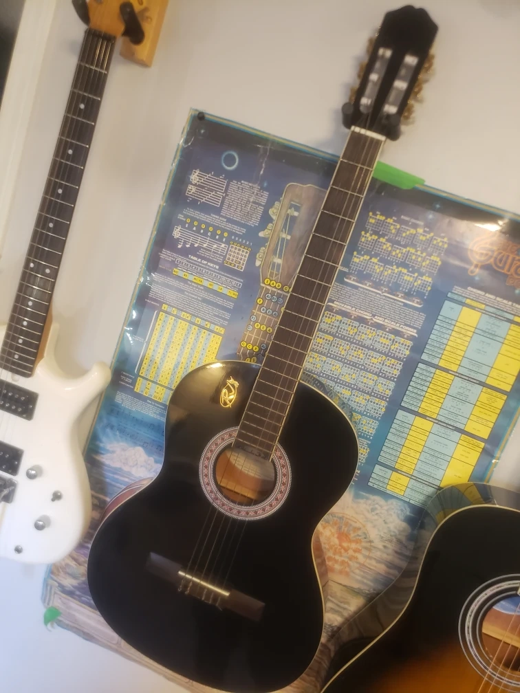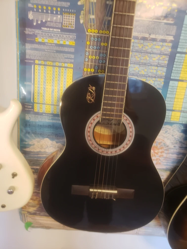 RJ Classical Acoustic guitar with black finish.,
