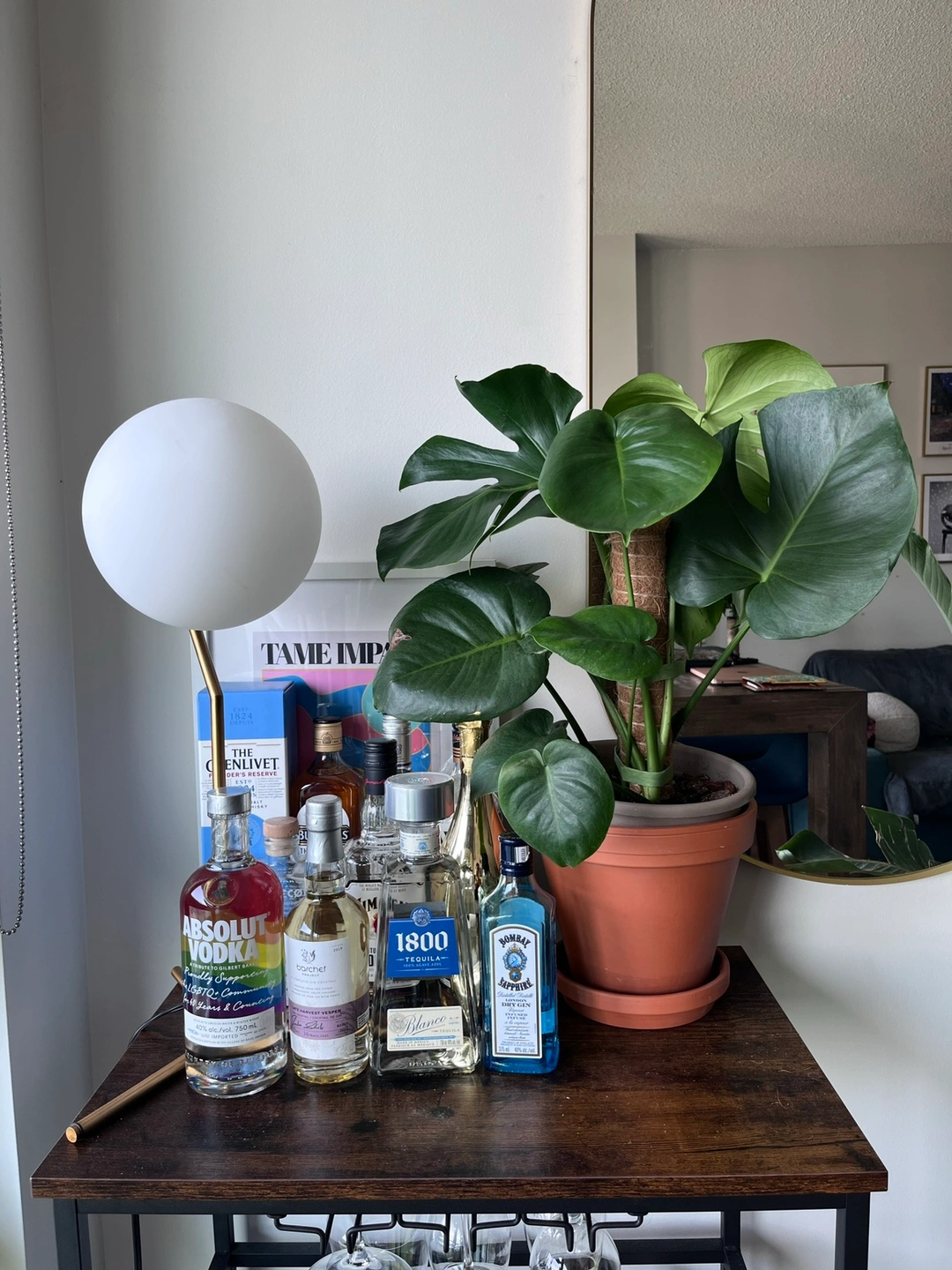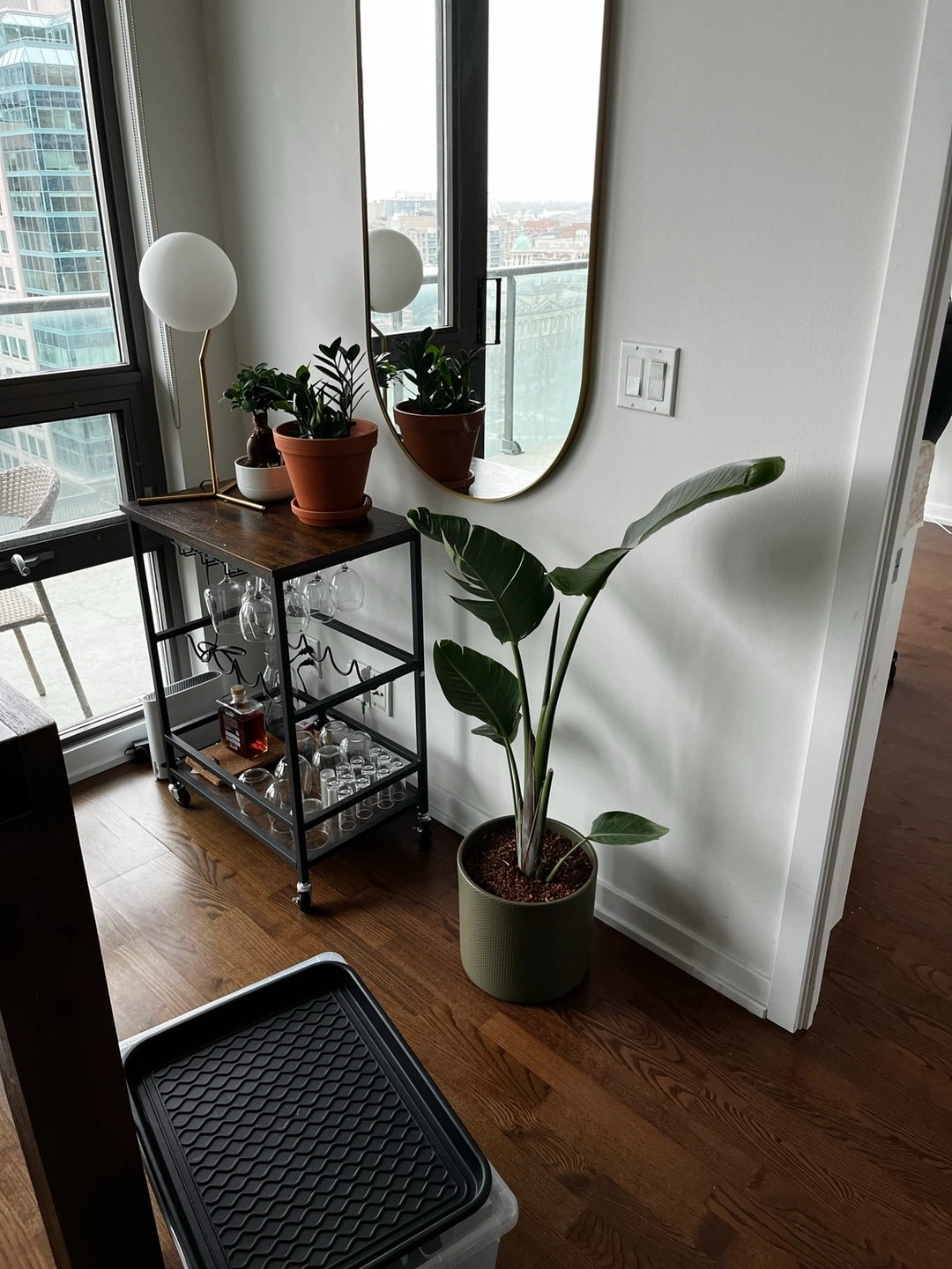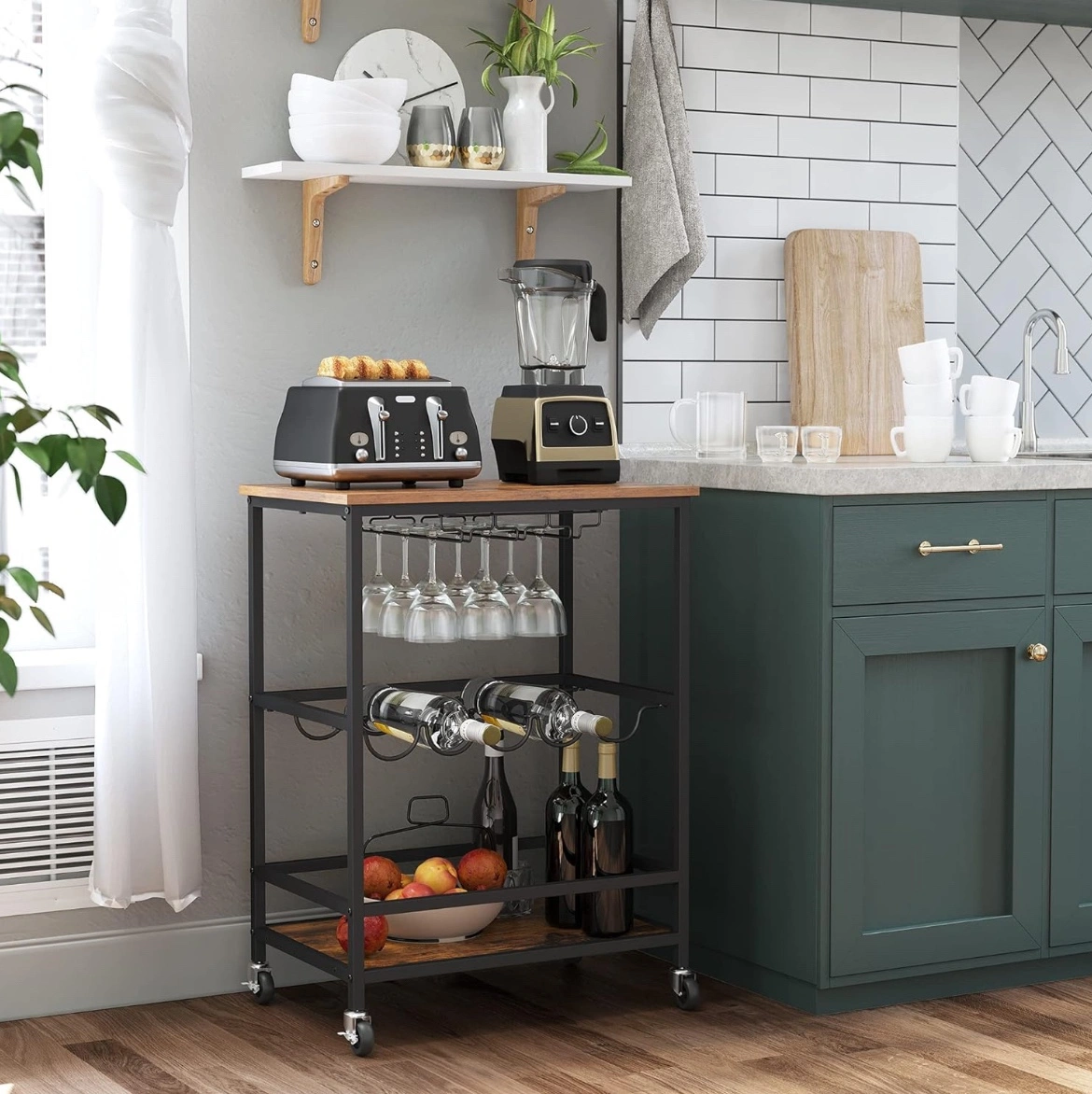 Bar cart, used gently for a year. No scratches. Can hold a coffee machine also