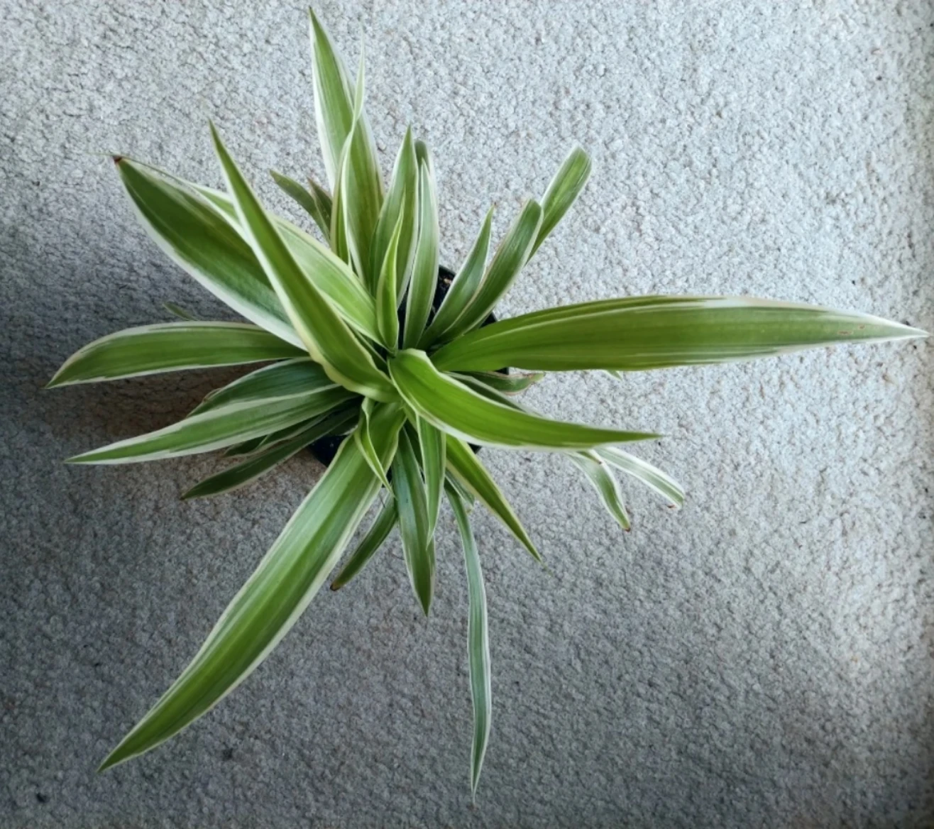 A small spider plant, well established, fully rooted, in a nursing pot.