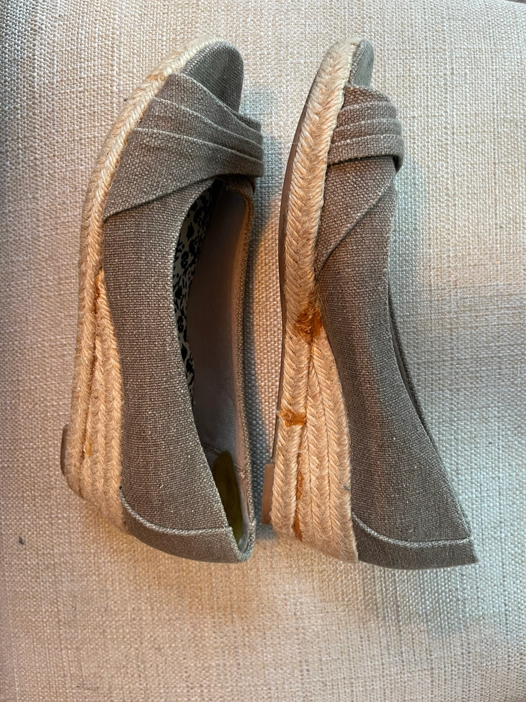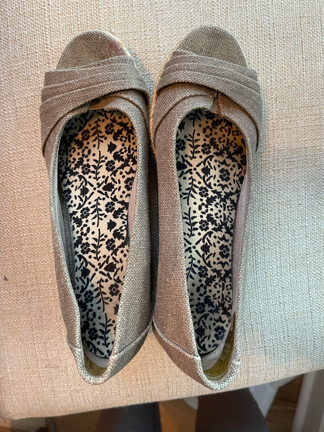 1000+Beige canvas espadrille wedges with a peep toe and a floral lining. Has some wear and the glue on the straw wedges is bleeding through. But definitely still have life left! Pick up is in Liberty Village! Check out my profile for more free stuff— trying to keep up the energy from the August challenge to clear out my closet. Don’t be afraid to ask for multiple listings!