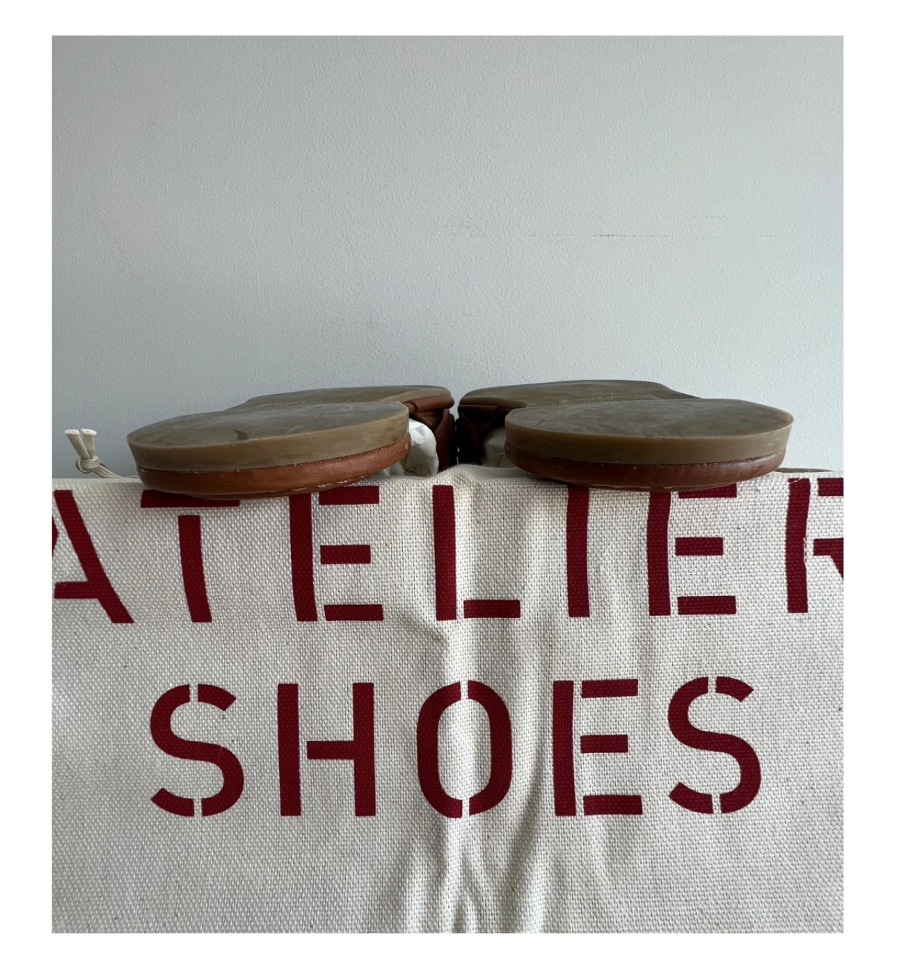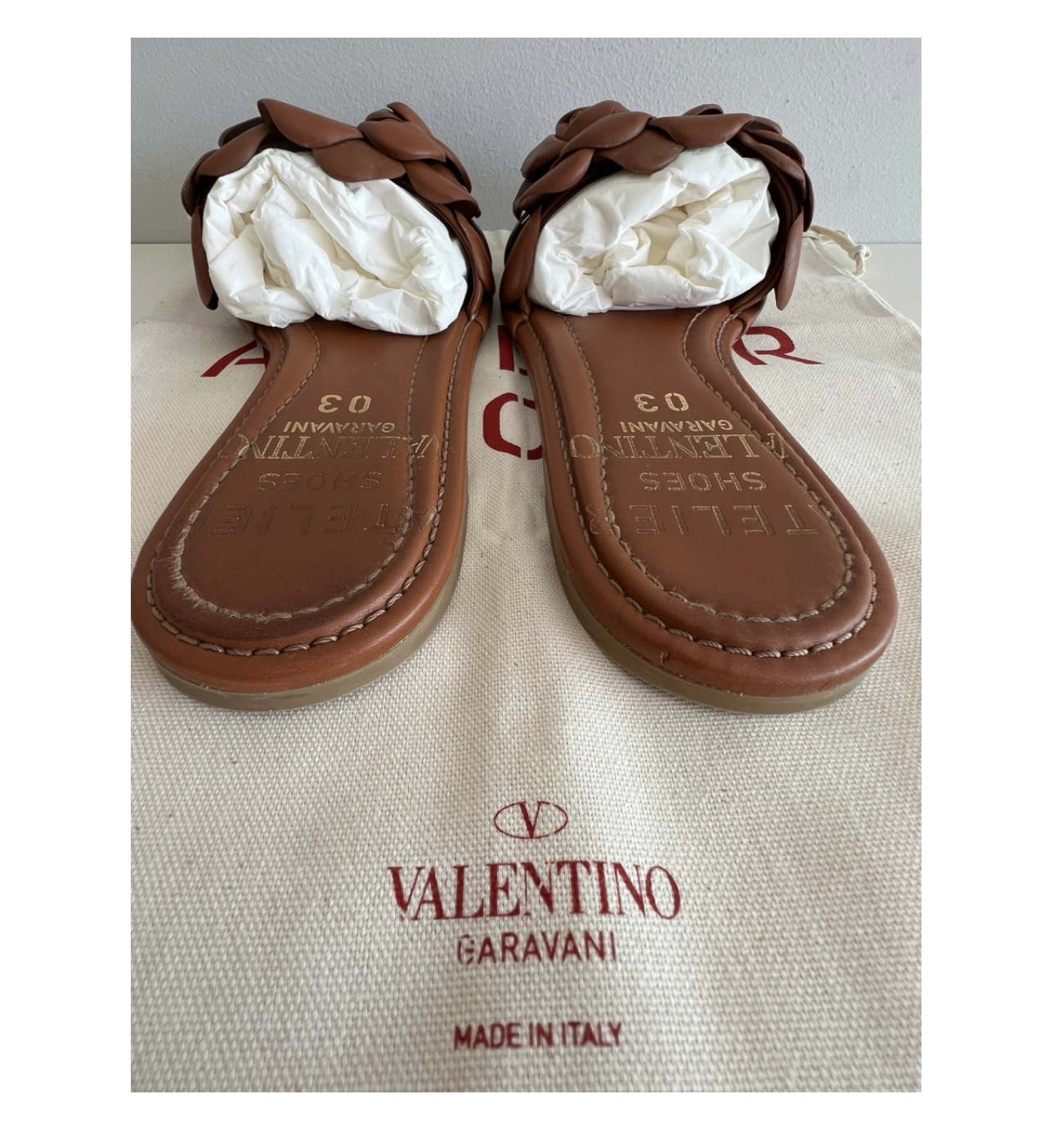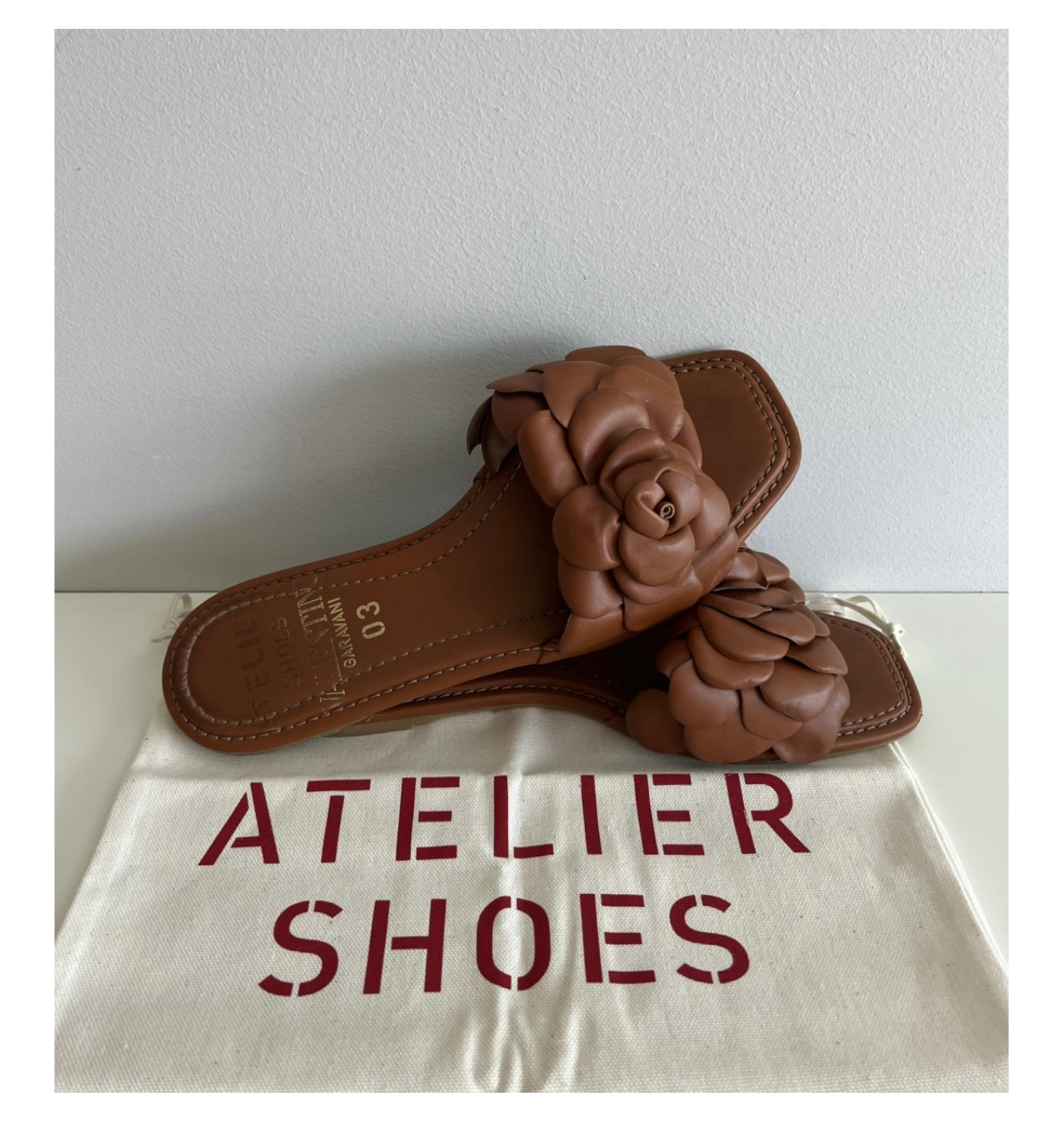 Brown leather slides with a large 3D rose detail on the front. Made in Italy. They are size 41