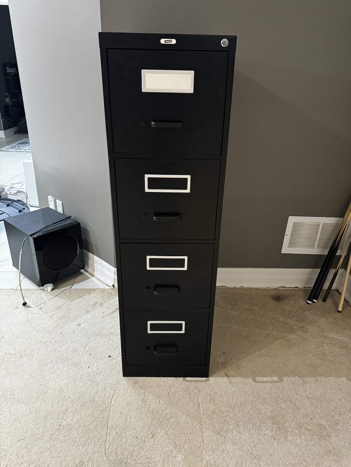 1 / 11 / 1Buy & SellBlack 4-Drawer Filing CabinetBlack 4-Drawer Filing Cabinet$50Four drawer filing cabinet in black. No key and one handle just needs a new screw.WHERE TO MEETCheck LocationView MapSELLERJessBridle Path-Sunnybrook-York Mills936 reviews2 chats·0 favorites·57 viewsSEND CHAT TO SELLERHi Jess! I’m interested in your listing.Hi Jess! I’m interested in your listing.Get the Karrot app to chatSign In to chat
