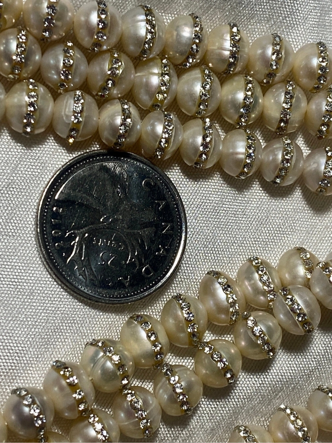 80Stunning natural silky freshwater PEARLS 40cm long 5mm 56 pc It’s absolutely sparkle ✨ and gorgeous in person👌 with cubic zirconia Although freshwater pearls are the most commonly produced pearls, their unique shapes and wide range of colors combined with their attractive prices and charming character🙌 Each $40