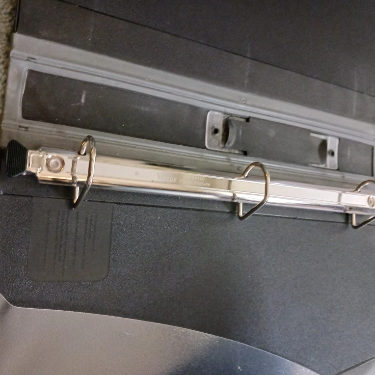 - 1 black binder with grey rubber reinforcement on edges (1.5 inch)