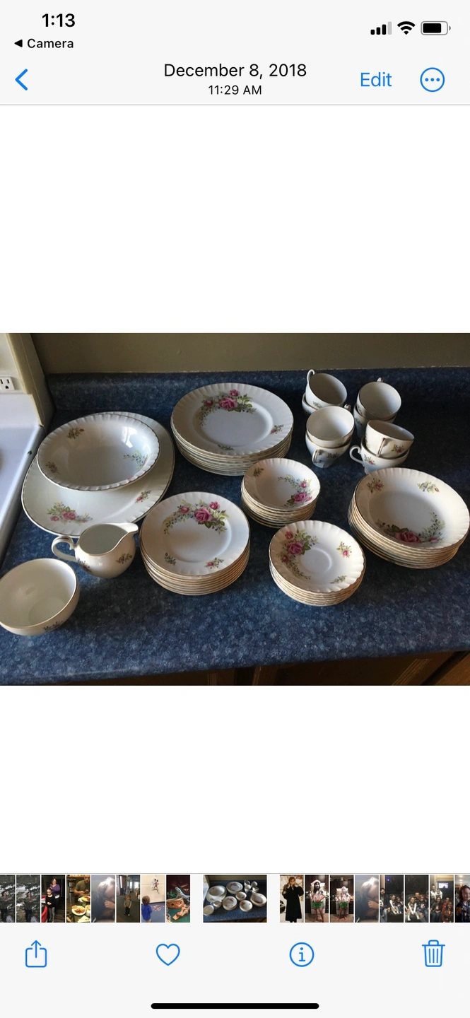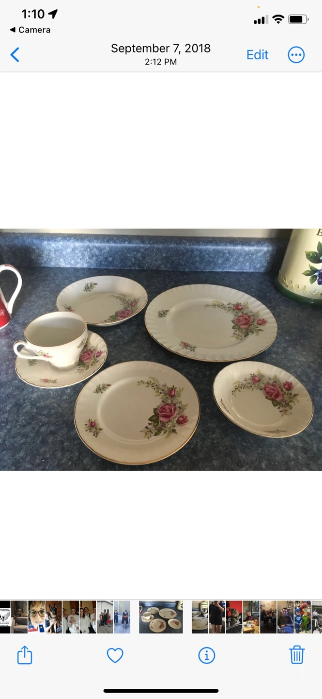 52 pieces Royal Rose white mist .Regid trade mark .Warranted 22 Kt gold decoration .Made in Stafford Shire England no 828344