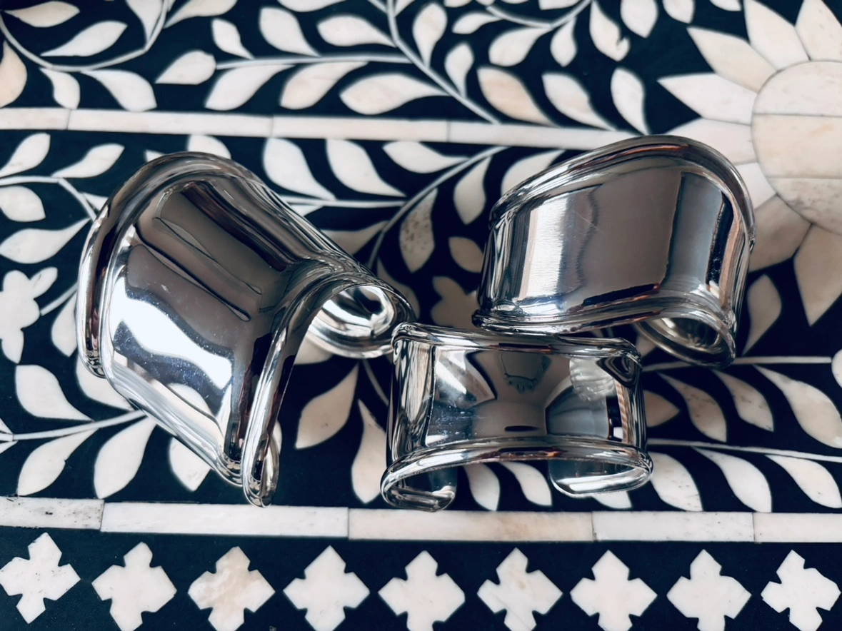 Set of 3 silver toned cuffs made of metal alloy. Dupes for the Elsa Perreti Bone Cuff bracelet.