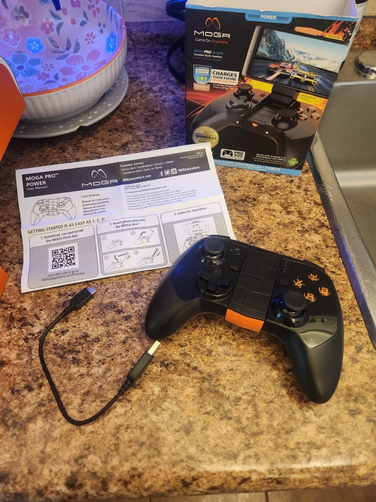 MOGA Pro Power game controller with USB charging cable and original box. lay on the go anywhere you go! Attach your phone and play! :)