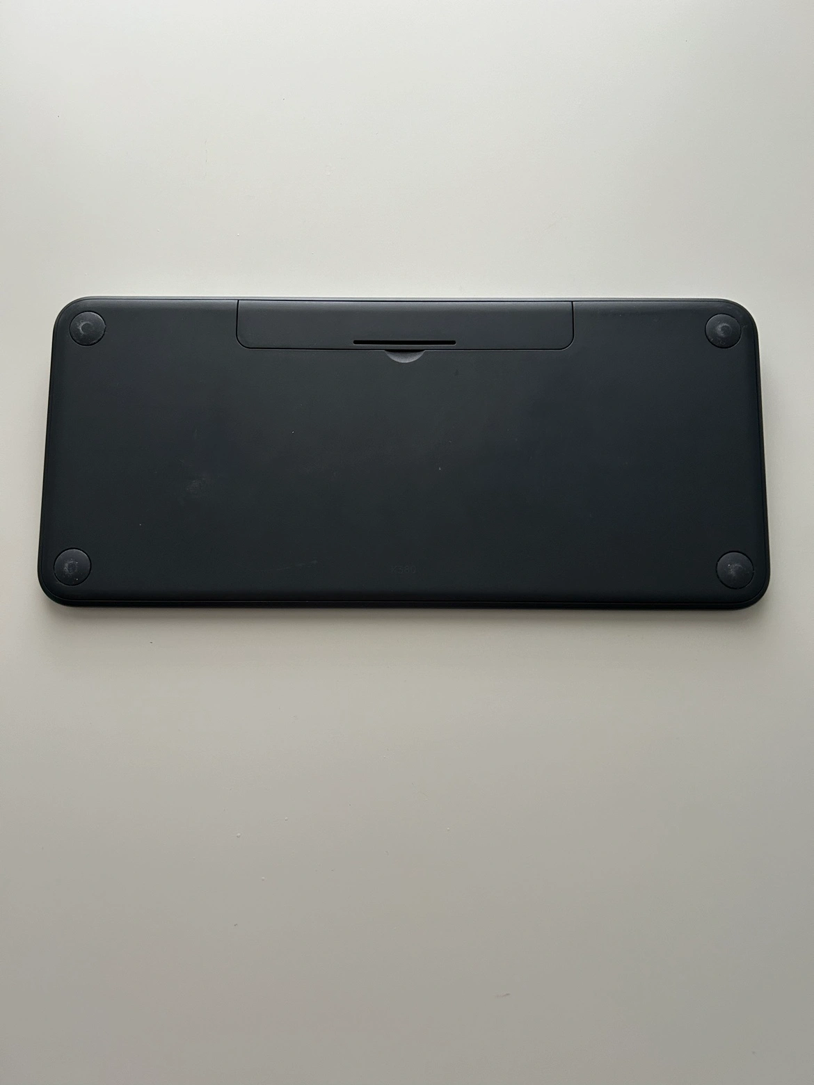 This is a wireless keyboard that is compatible with multiple devices, including computers, phones, and tablets. It comes with its original packaging. Used, in good condition. Everything works. Comes with batteries inside.
