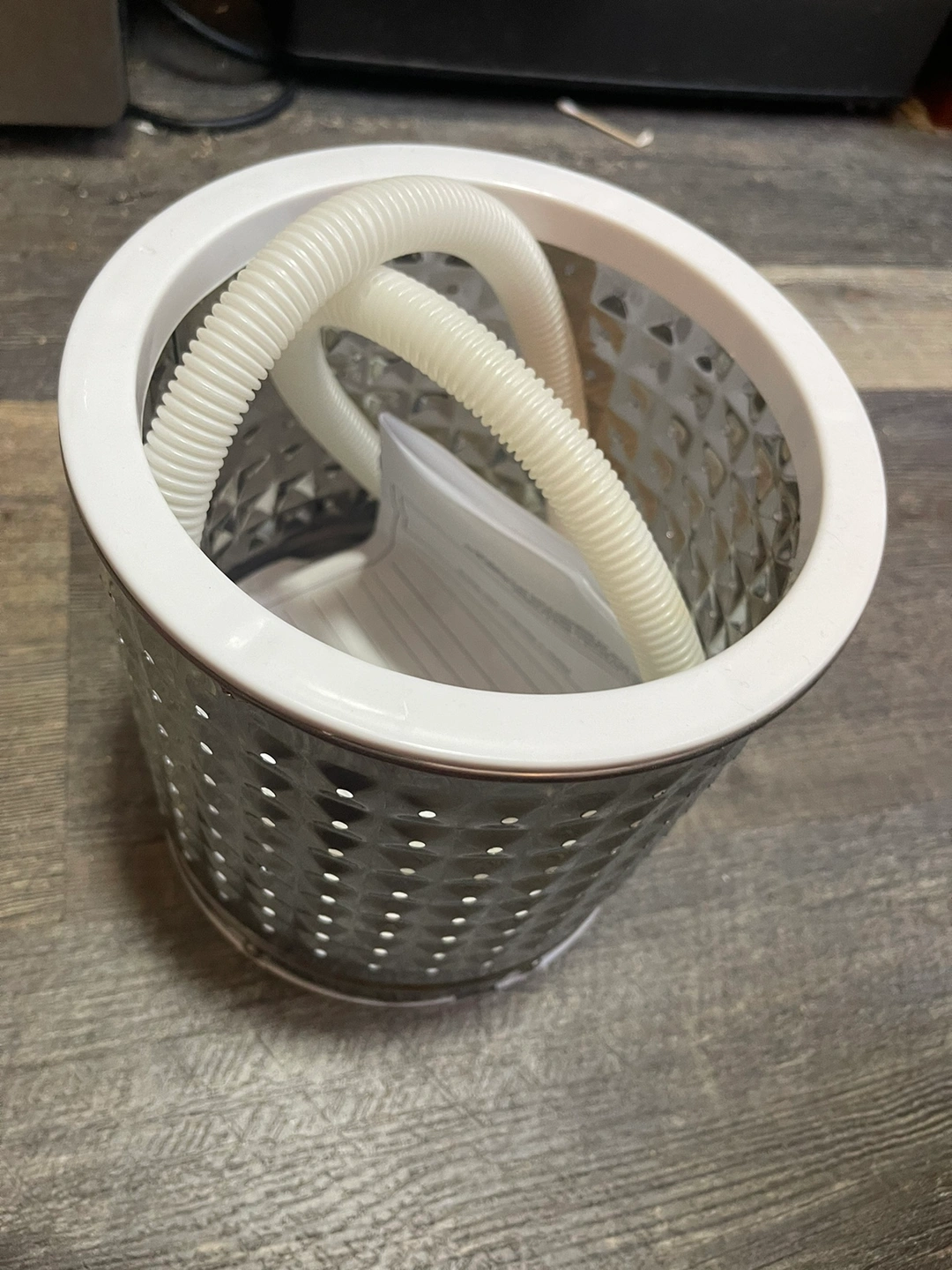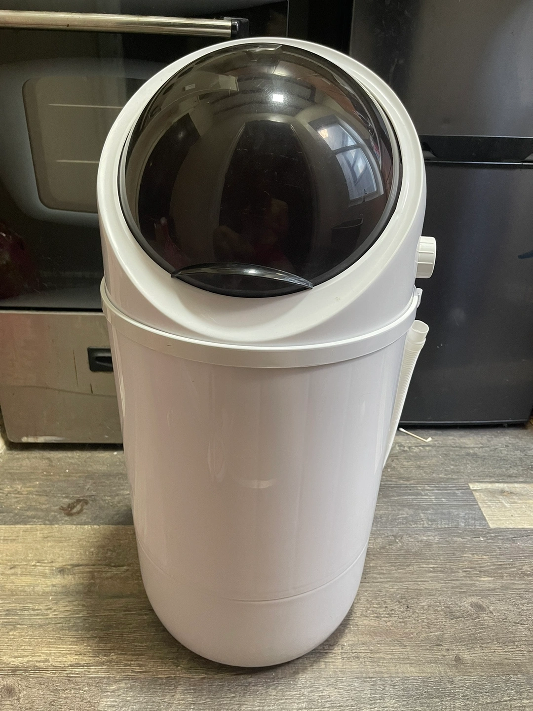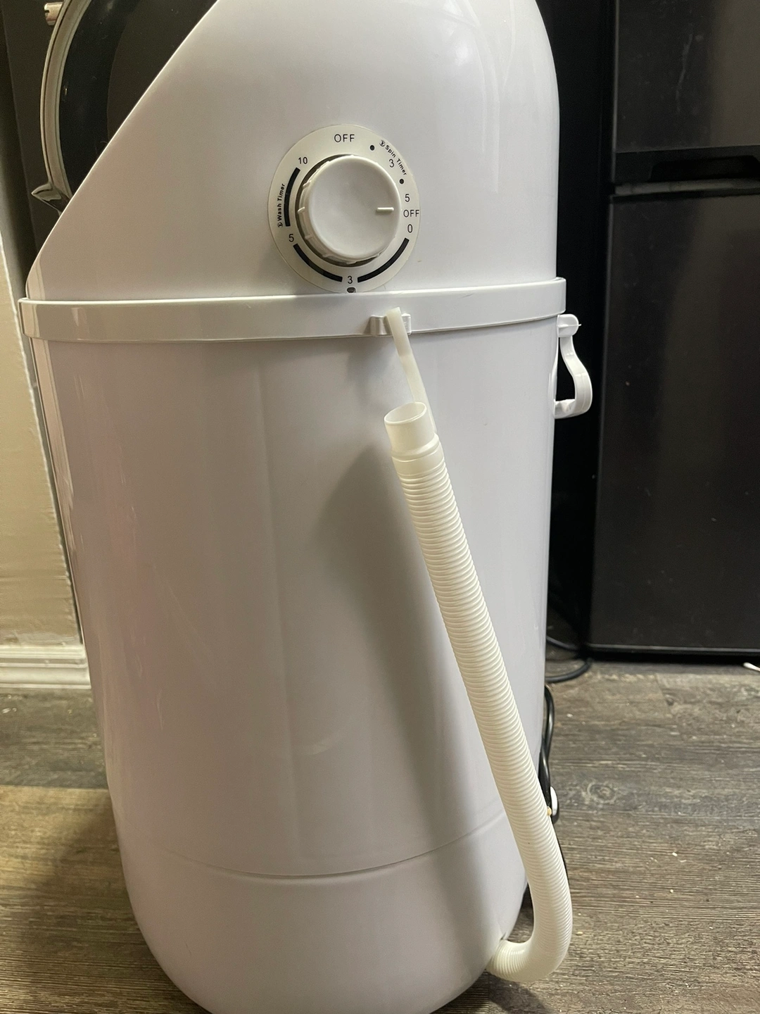 A mini portable washer. Barely used. Volume can fit about 5-6 tshirts plus 2 pairs of pants and some small items at once. Good for delicates. Comes with a small drying tube that can fit a small volume of clothes to tumble dry.