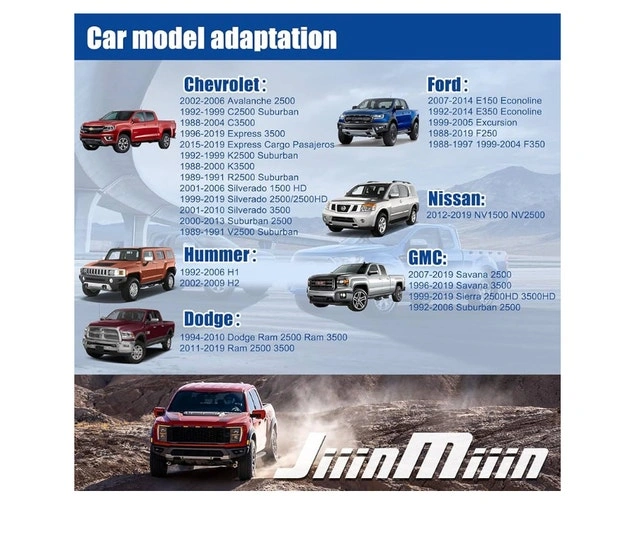 Universal Fitment - 1988-2019 F-250, 1988-1997 1999-2004 F350, 1994-2010 Ram 2500 3500, 2011-2019 Ram 2500 3500, 2002-2006 Avalanche 2500, 1992-1999 C2500 K2500 Suburban, 1988-2004 C3500, 1996-2019 Express 3500, 1988-2000 K3500, 2001-2006 Silverado 1500 HD, 1999-2019 Silverado 2500/2500HD, 2001-2010 Silverado 3500, 2000-2013 Suburban 2500, 2007-2019 Savana 2500, 1996-2019 Savana 3500, 1999-2019 Sierra 2500HD 3500HD, 1992-2006 Suburban 2500
