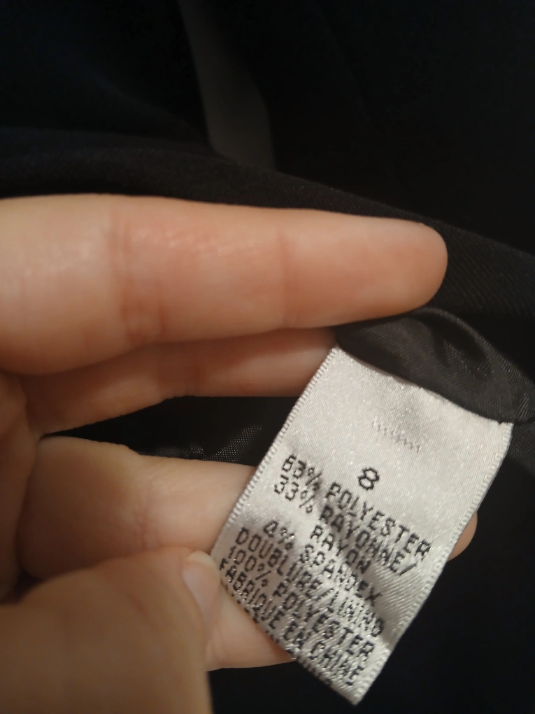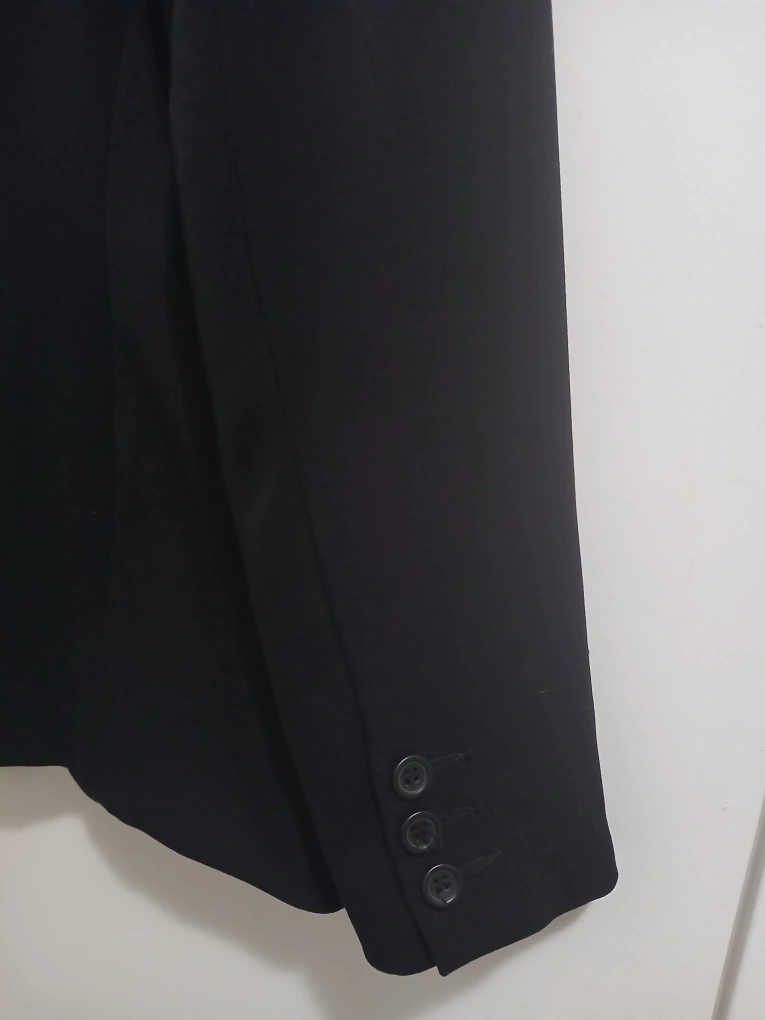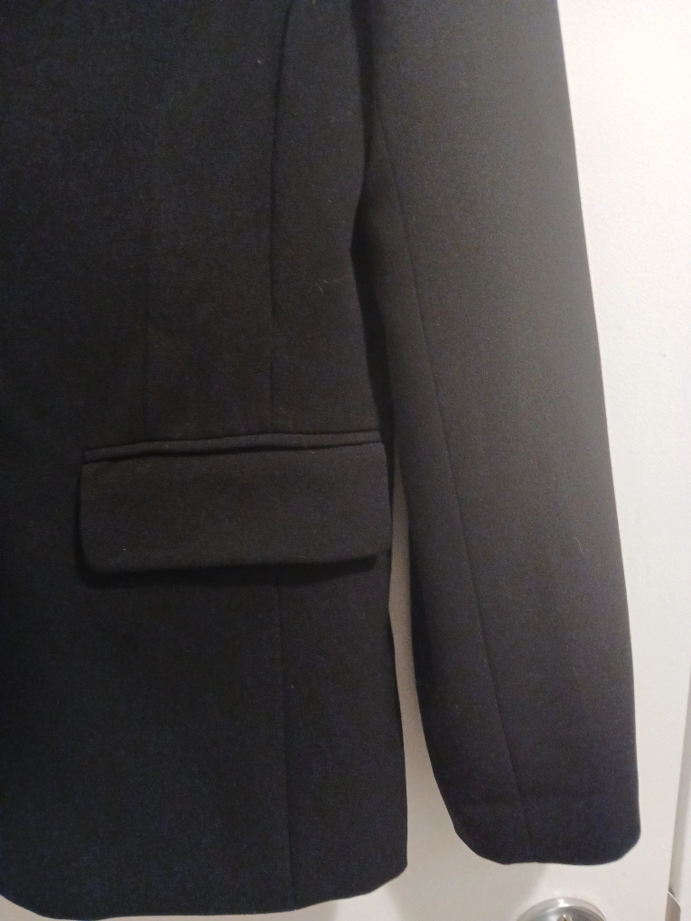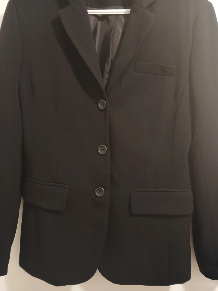 Brand: Michelle Type: Formal blazer with 3 buttons Colour: Black Size: 8 Composition/material: 63% polyester, 43% rayon, 4% spandex Additional measurements: 71 cm length, 45 cm pit to pit Condition: Excellent Additional notes: Great for formal events, work, weddings, etc