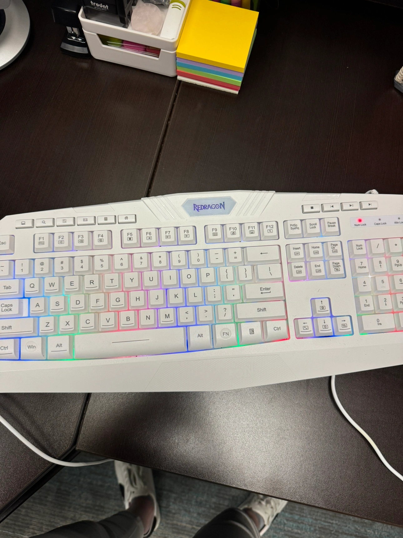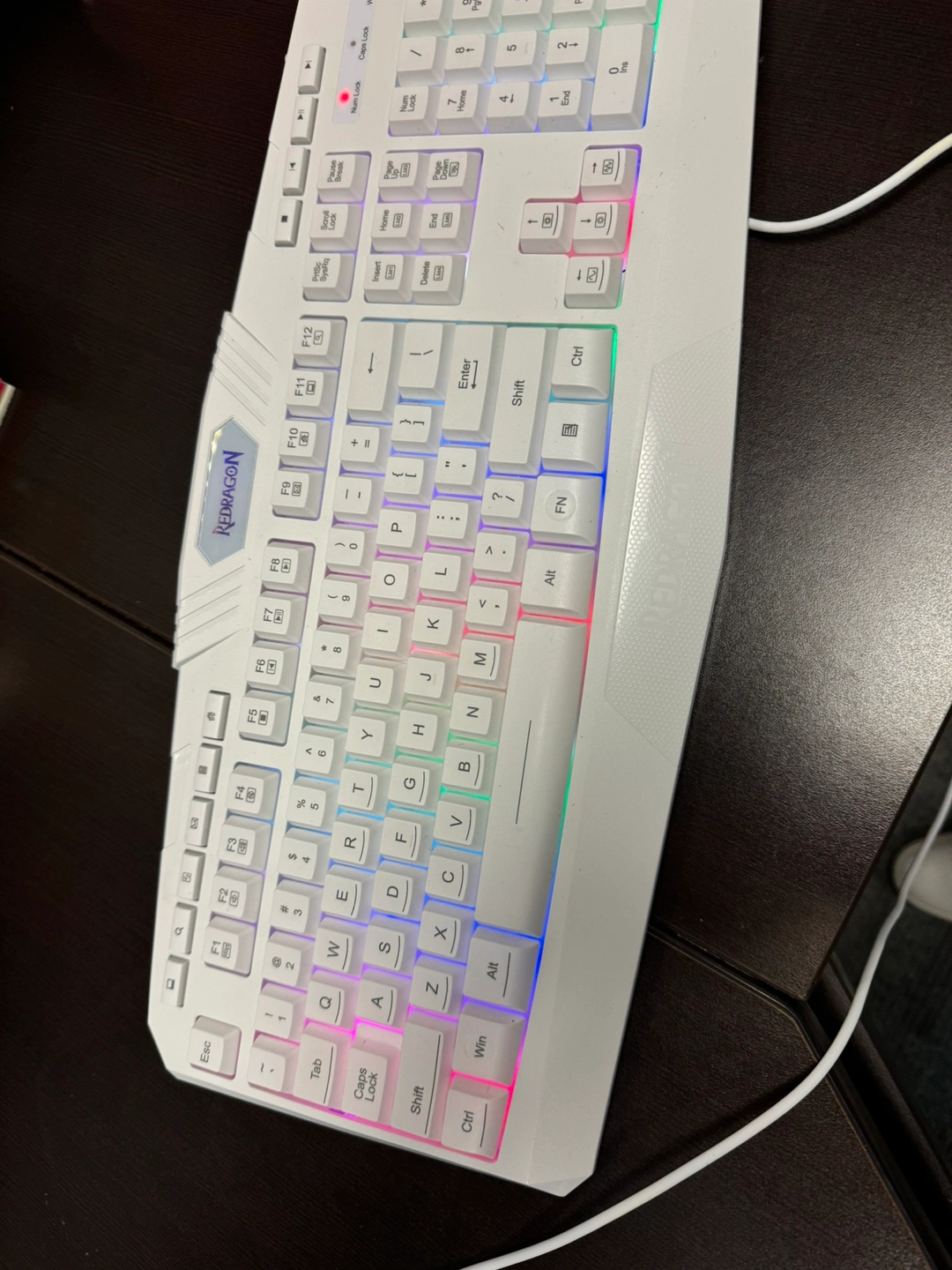 Wired keyboard and mouse in white and red. Backlit USB connector.