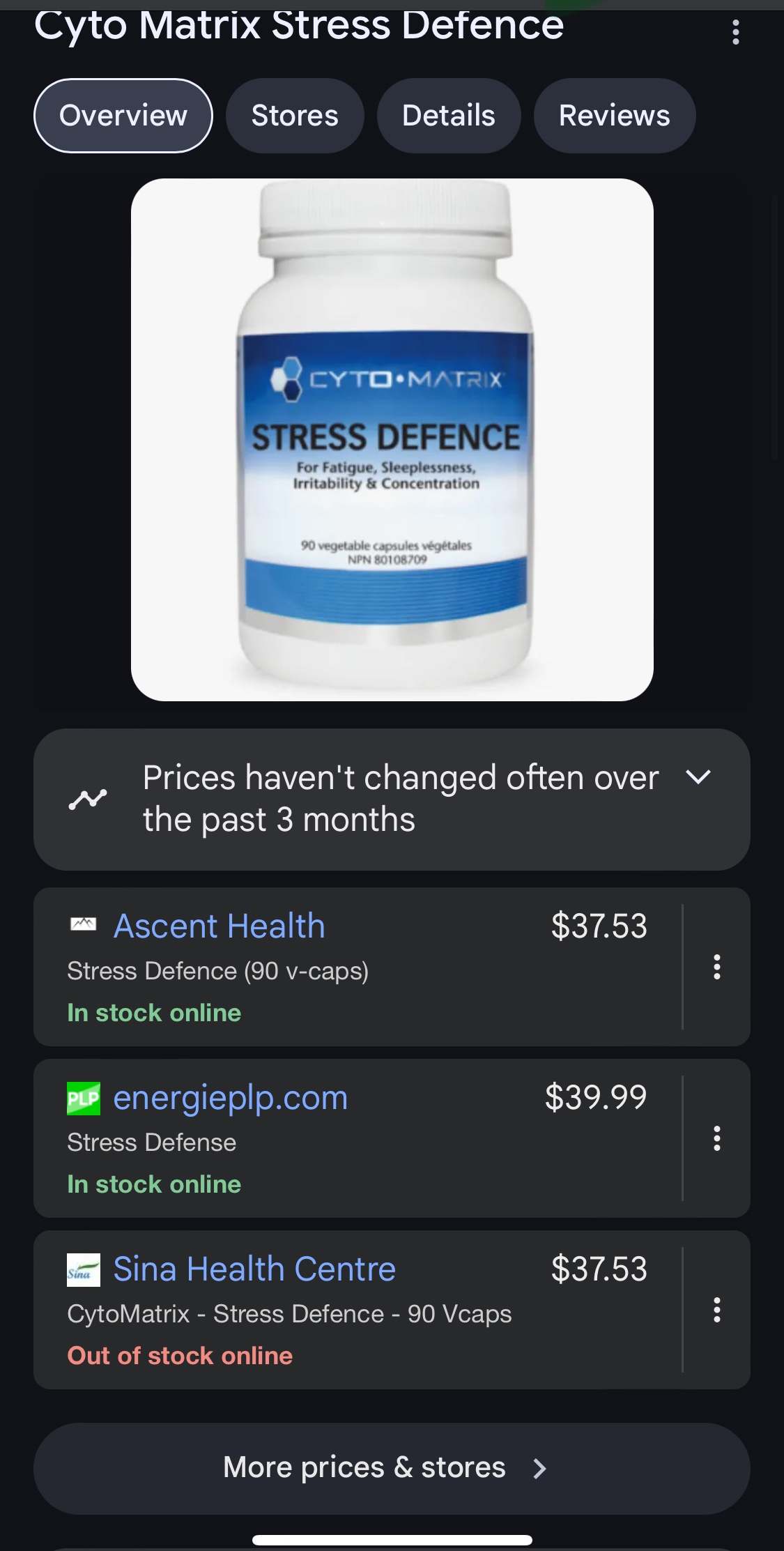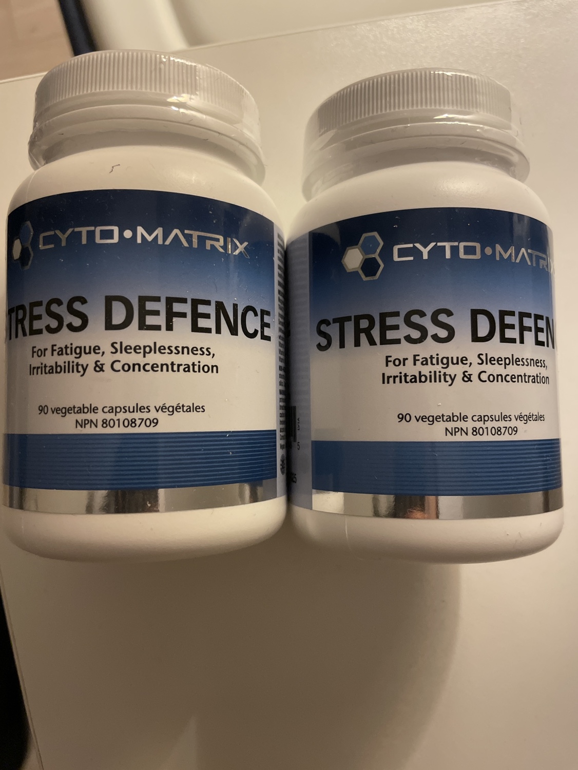 One bottle of sealed Cyto-Matrix Stress Defence Supplements, each containing 90 capsules. Expiry 2025 04. Professional grade supplement.