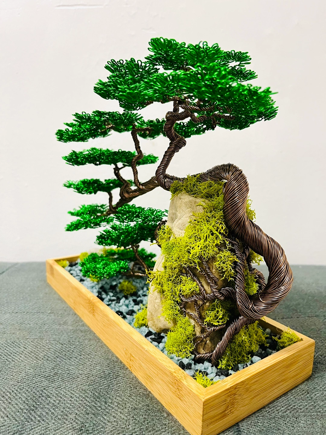 We are originally from Philippines and migrate in Toronto Canada. We craft wire trees inspired by flowers and Bonsai, Everything we do is by hand and each sculpture is uniquely shaped from twisted wires,local rocks,woods, and in pots