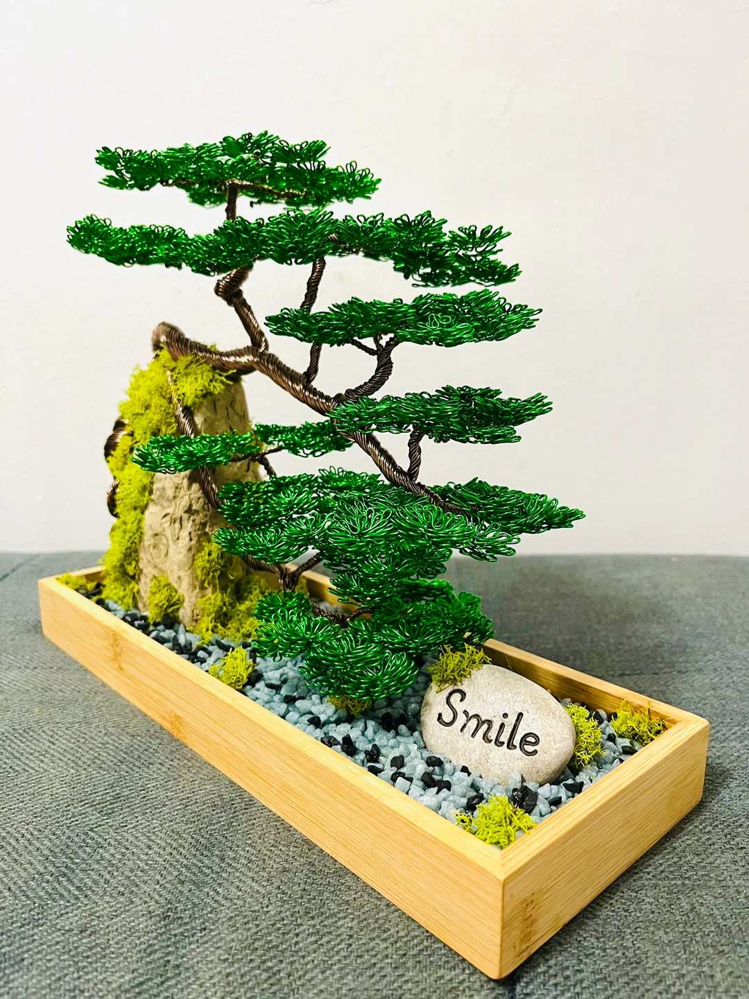 It was completely handmade by me and my wife, a unique piece crafted by us, Whether as a decoration in an apartment or office, whether in a showcase, on the shelf, on the desk or a side table, and also perfectly for birthday gifts, anniversary who loves bonsai, and flowers, it will always be an eye-catcher. Timeless, simple and yet special.