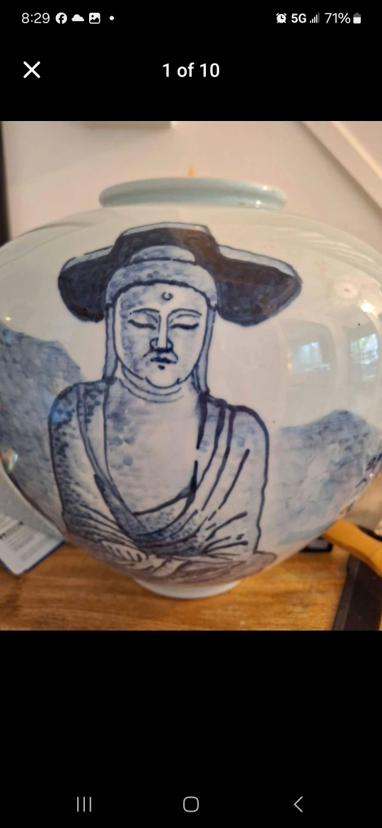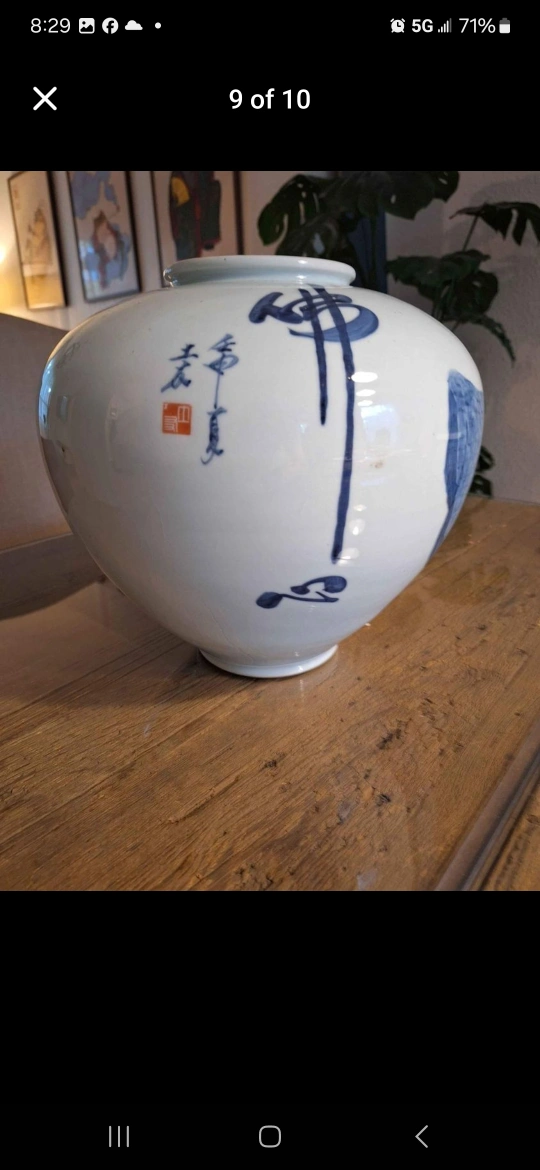 Large Mint Vintage Korean Blue & White Temple Vase Over 50 Ye&