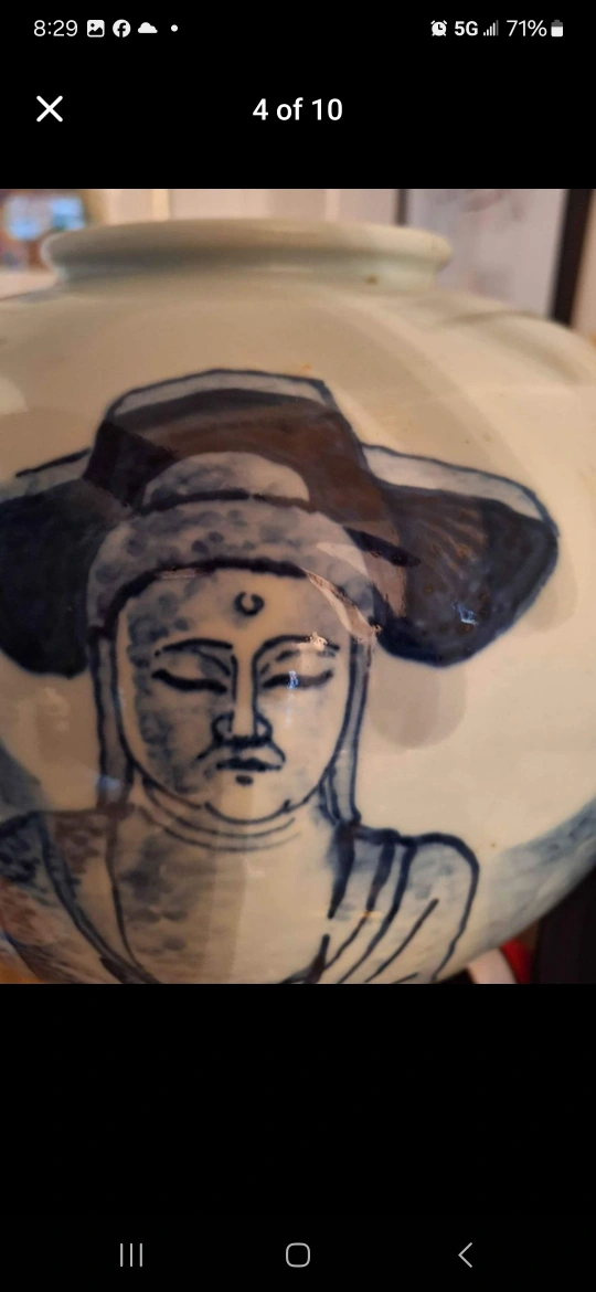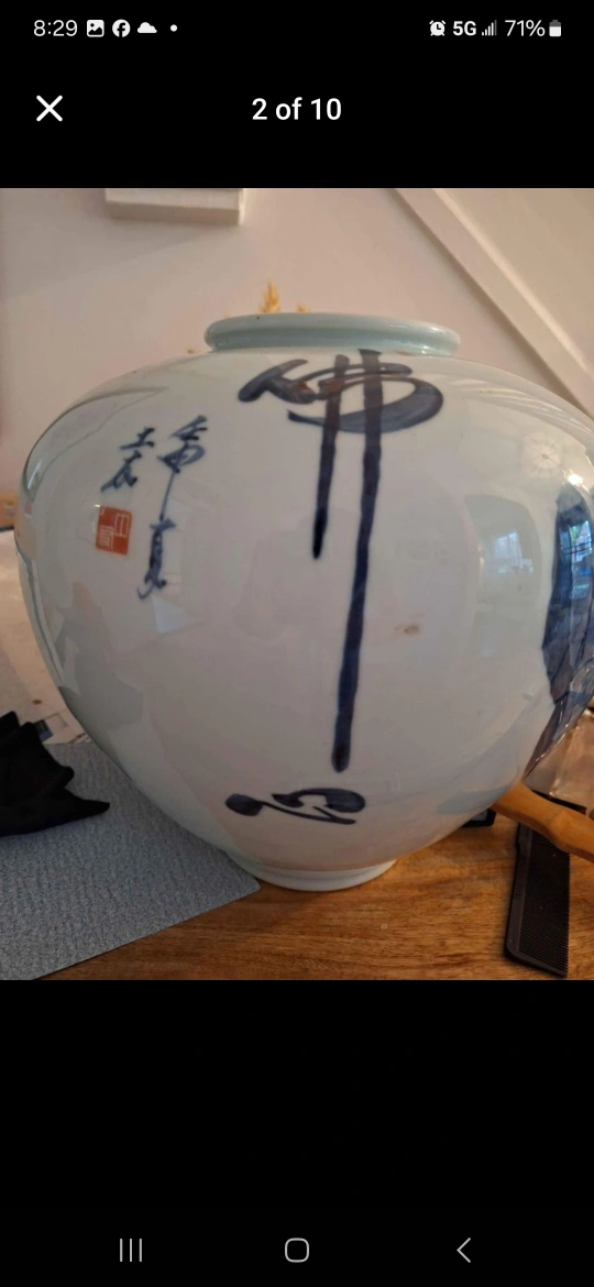 Large Mint Vintage Korean Blue and White Temple Vase No Damage Over 50 Years Old