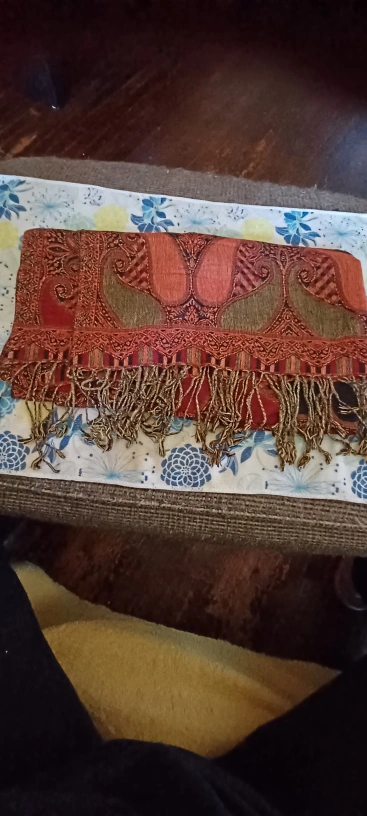 100 % Pashmina scarf 1 red has been SOLD 1 beige has been SOLD 1 red mosaic design from Italy. 70% cashmere 30% Silk - is still - AVAILABLE. $10.00 Brand New. never used, kept in clean environment. use for yourself or a gift for that special someone.
