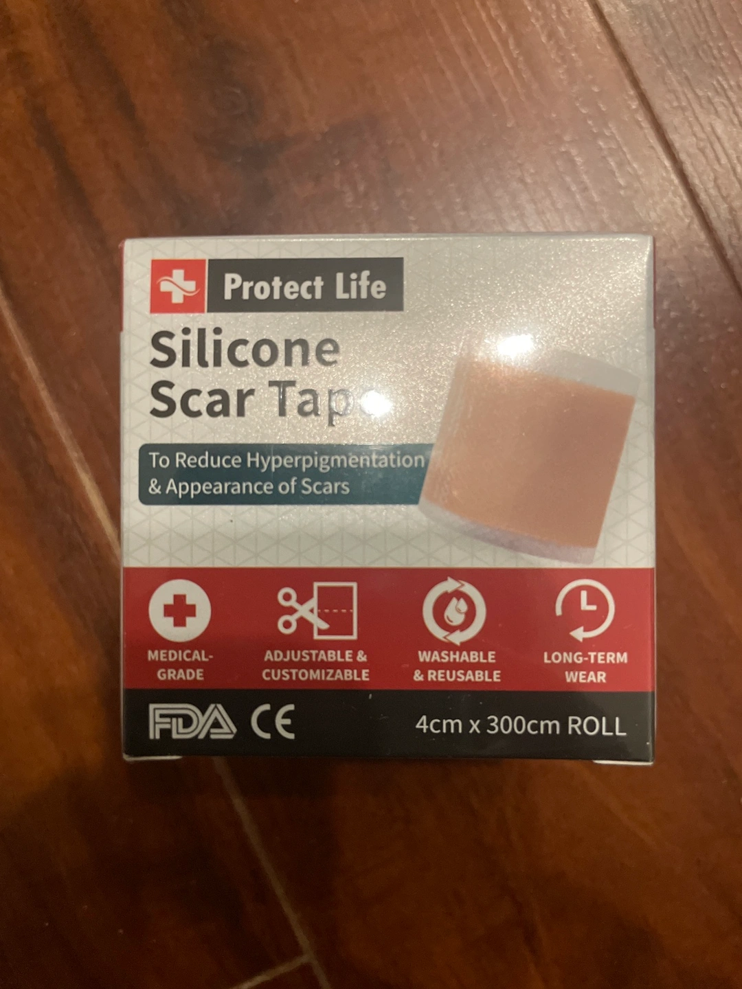 BRAND NEW 4 cm x 300 cm roll of silicone scar tape. This product is designed to reduce hyperpigmentation and the appearance of scars. It is washable and reusable and can be adjusted to fit the size of the scar.