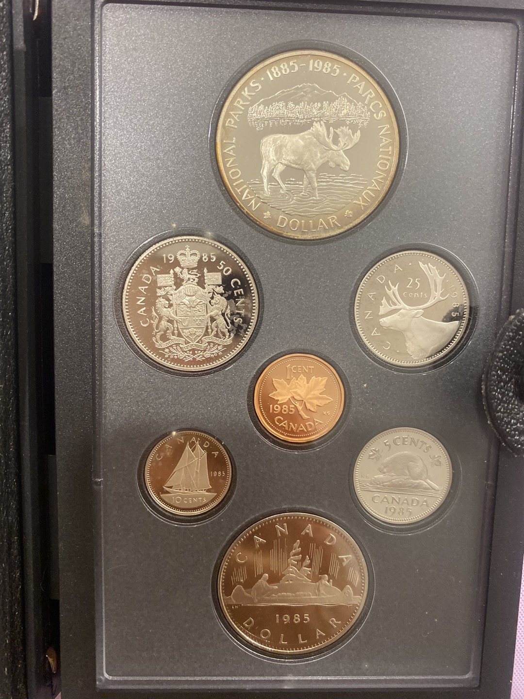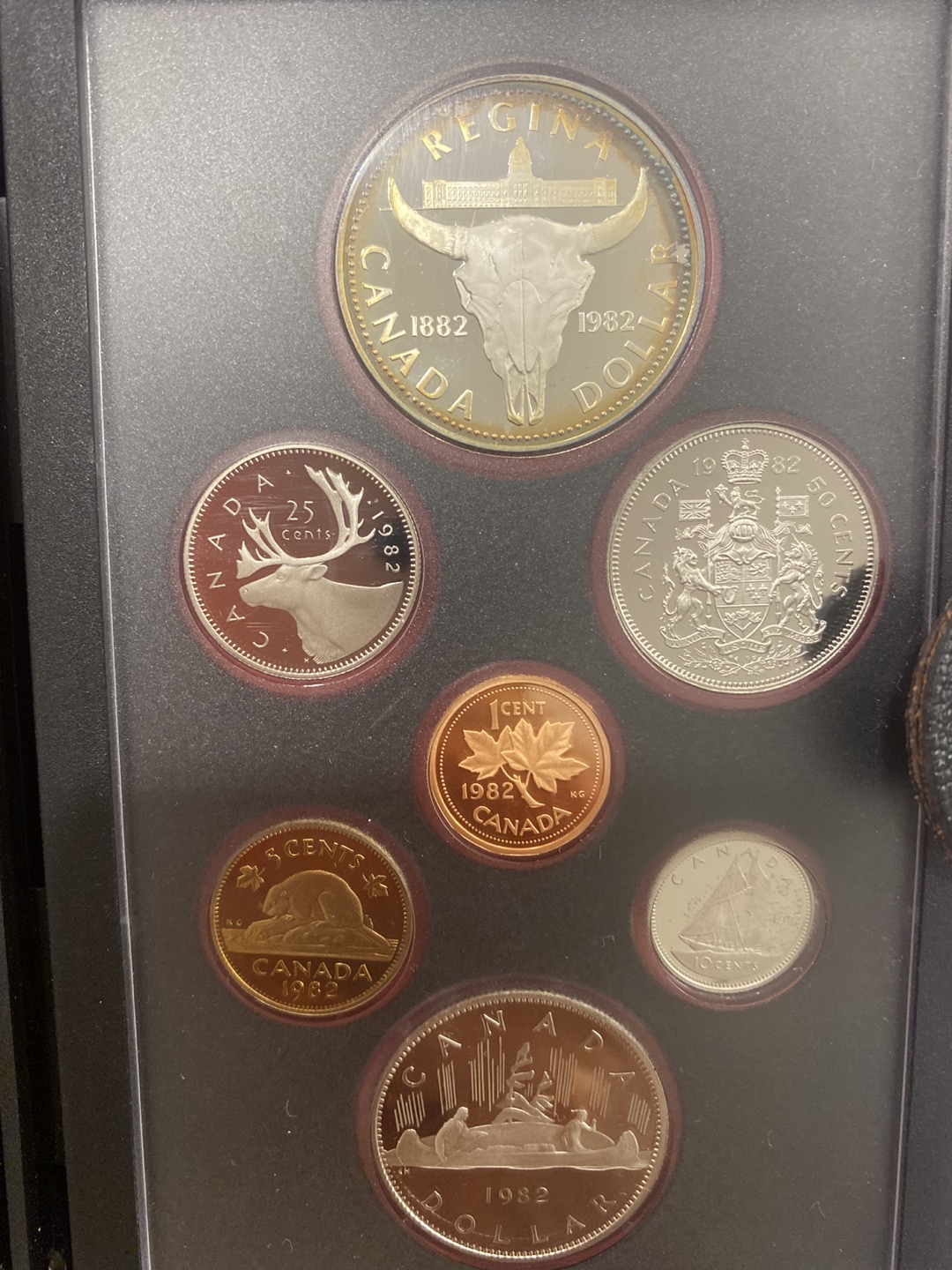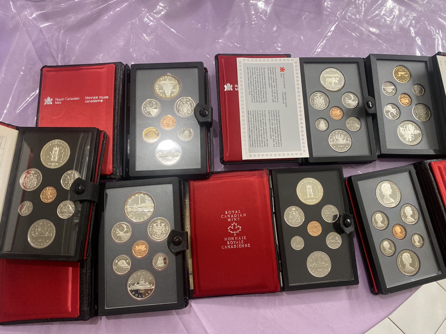 7 Double dollar Canada Proof coin sets, 1977-1990 w Silver $1 π