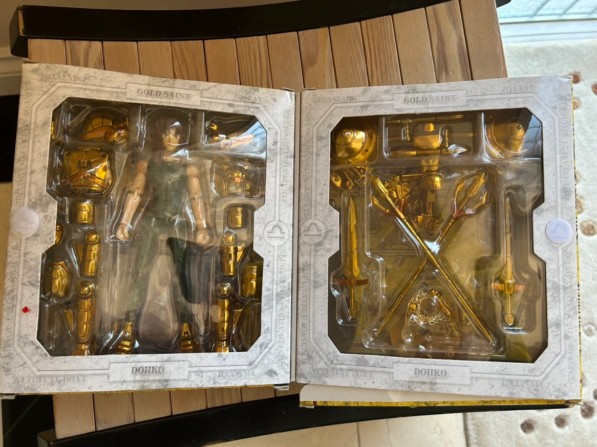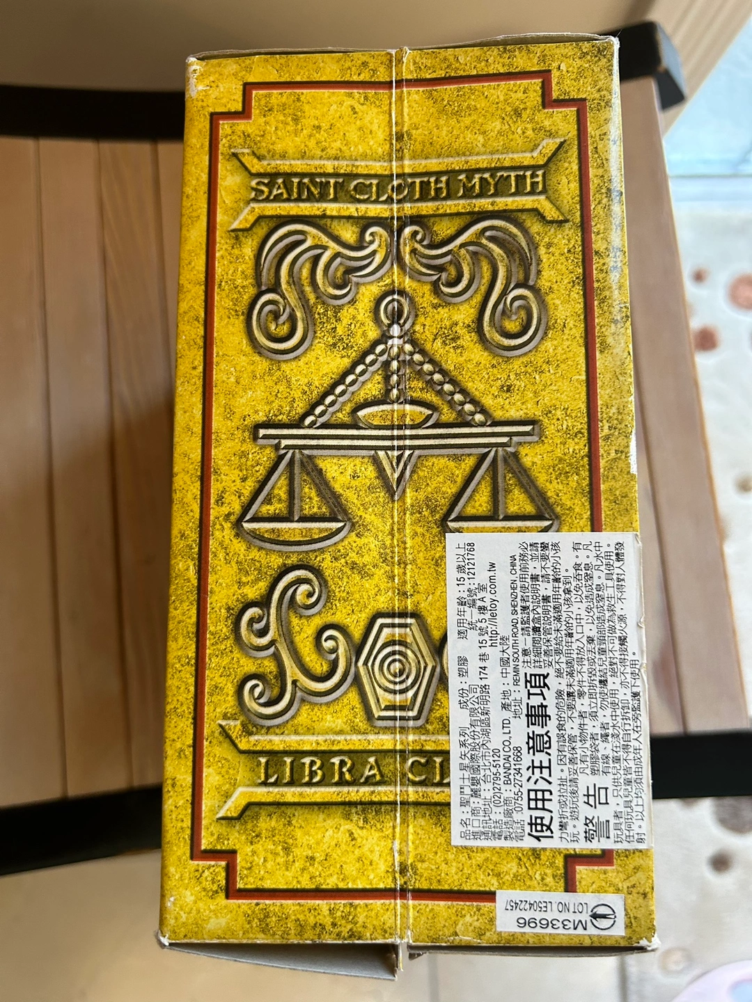 This is a Bandai Saint Cloth Myth Libra Dohko figure. The figure includes the Libra cloth and accessories. It is approximately 18cm tall. The box shows some wear. This is a collectible for fans of the Saint Seiya anime and manga series.