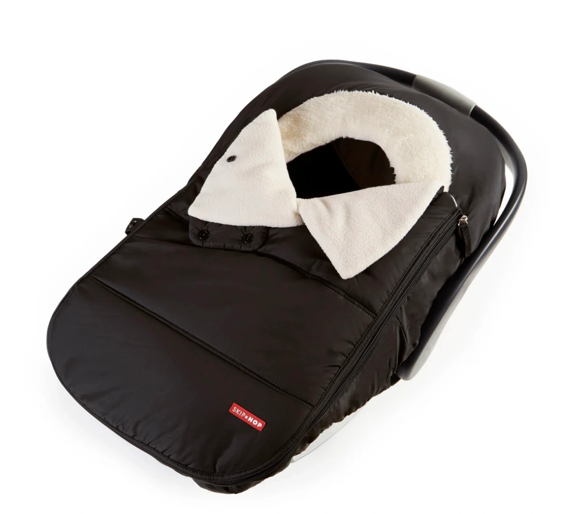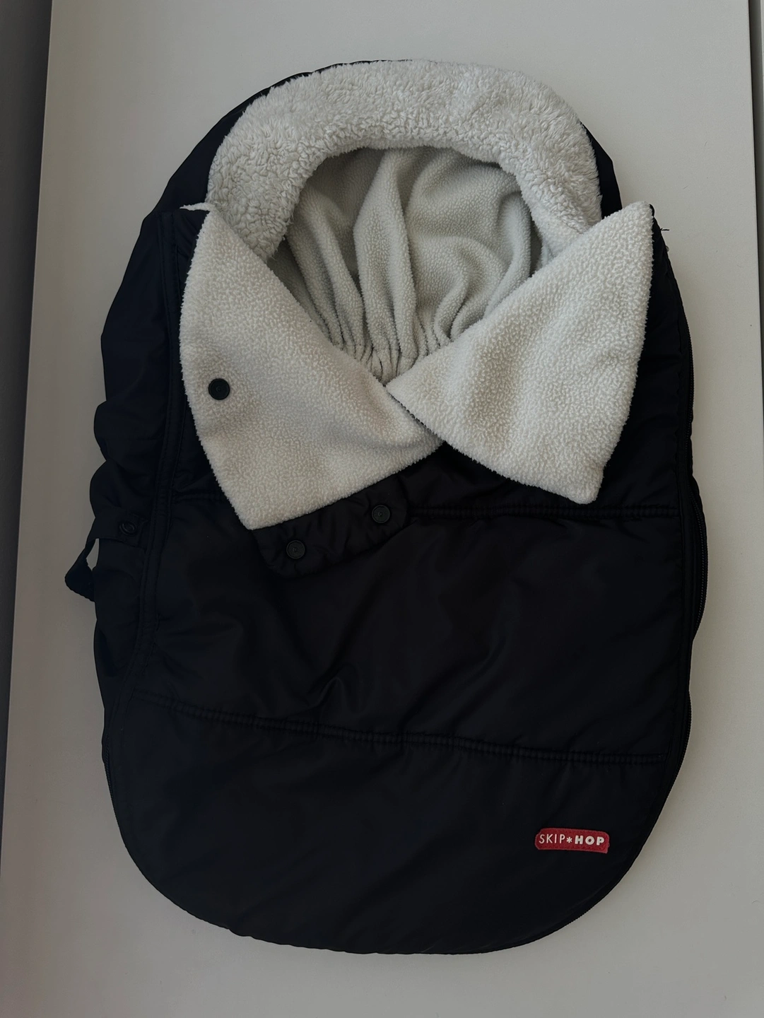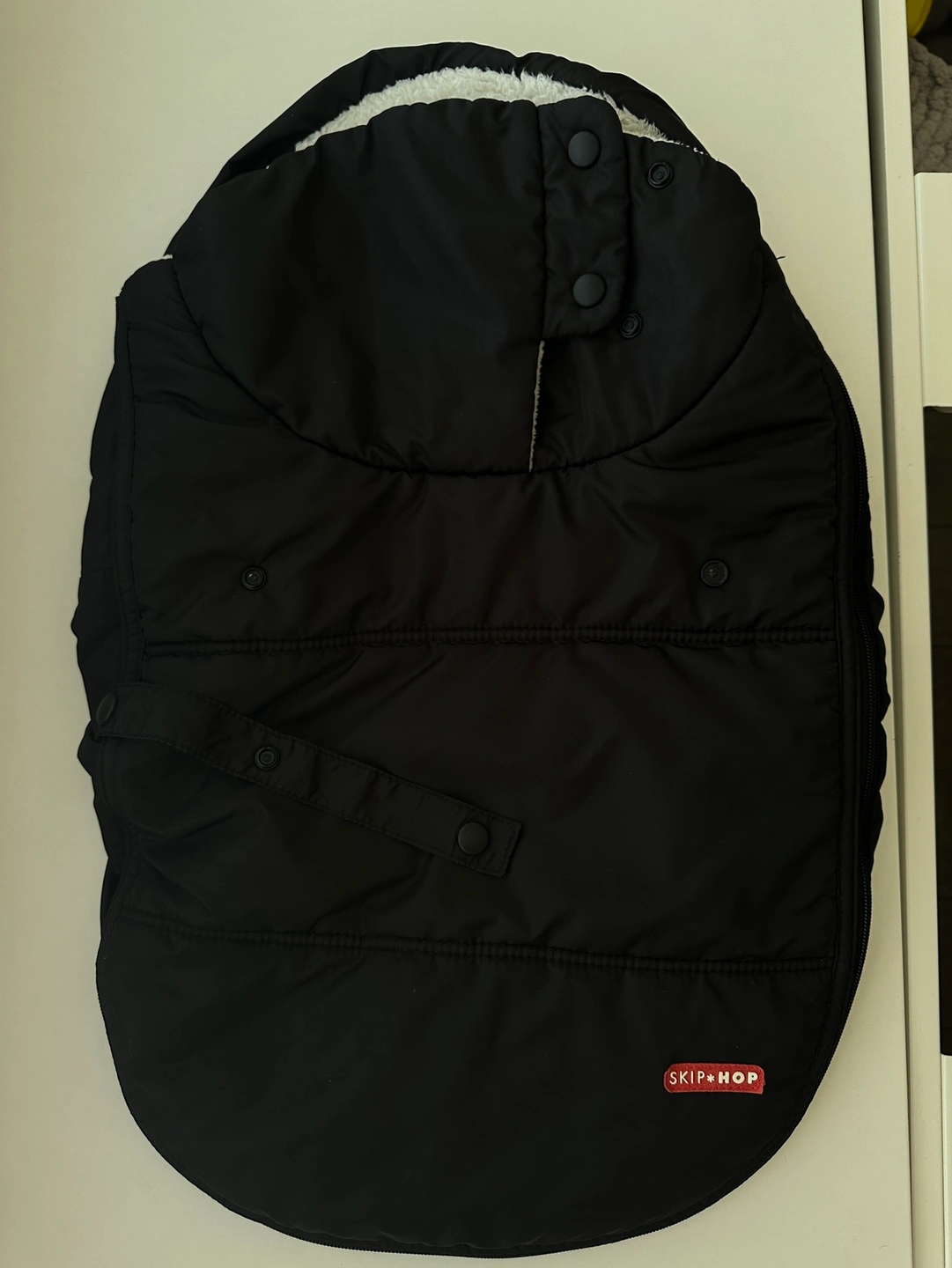 Excellent condition. In box Colour: Black Baby car seat covers are the perfect accessory for cold weather travel with your little one. With elastic edges to secure around any car seat, our cozy cover frames baby’s head in plush fleece. Keep the collar closed to block out cold wind, or flip it open and snap it to the outer layer for instant temperature control. The roll-away front flap offers easy access to baby and zips off for full access. Universal fit car seat cover features soft fabric for baby’s comfort and elastic bottom for a snug fit on any car seat PVC-free, Phthalate-free; Size (inches): 16l x 3w x 27h; (cm): 41l x 8w x 69h Ultra-plush collar flips open and snaps to outer layer Collar snaps closed for extra warmth Wind proof and water resistant