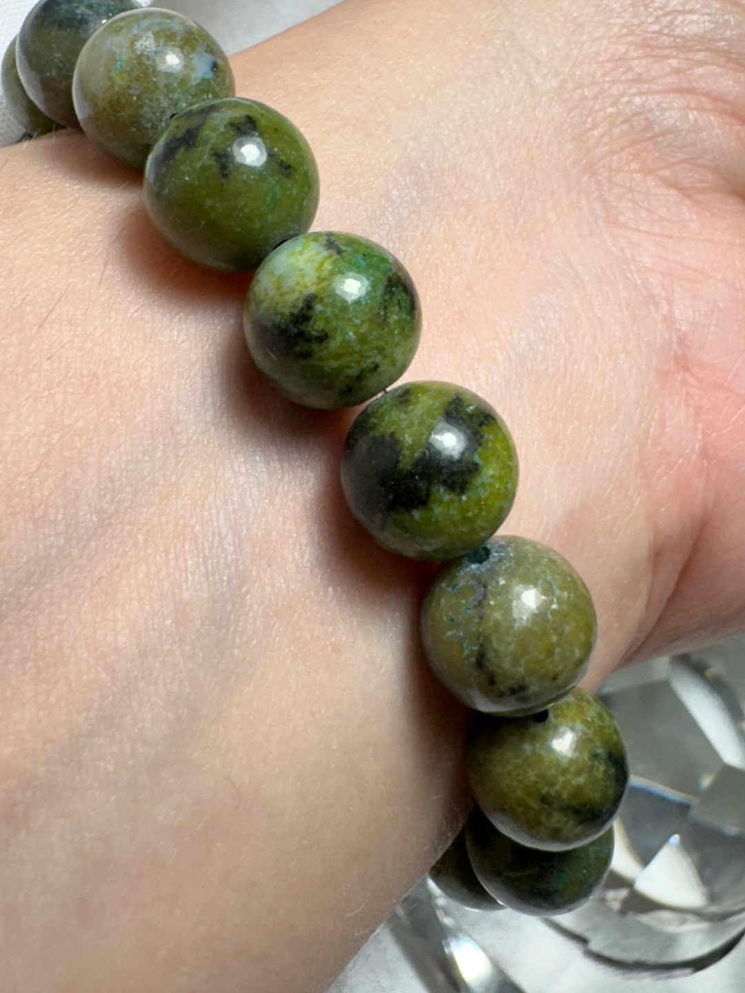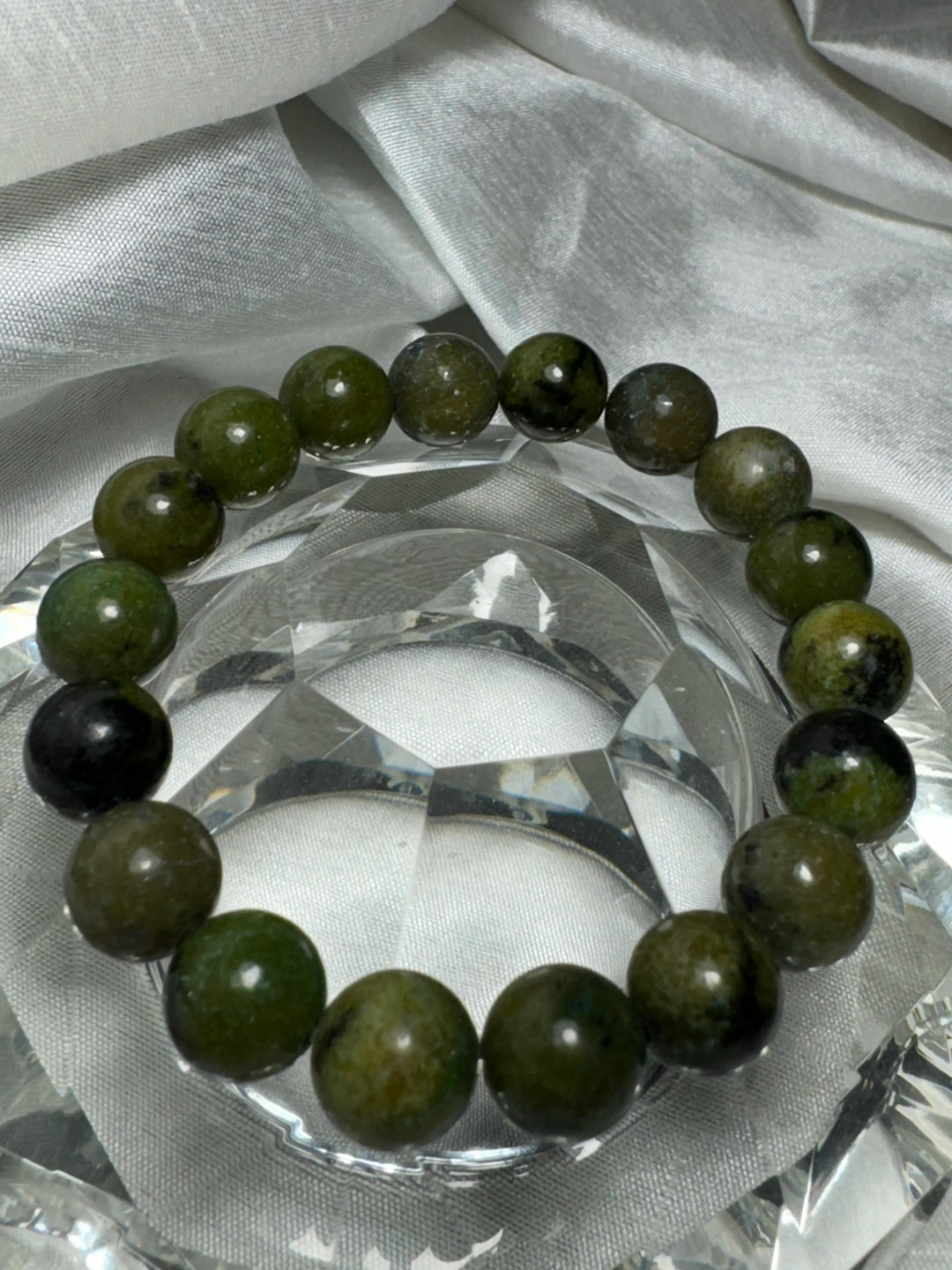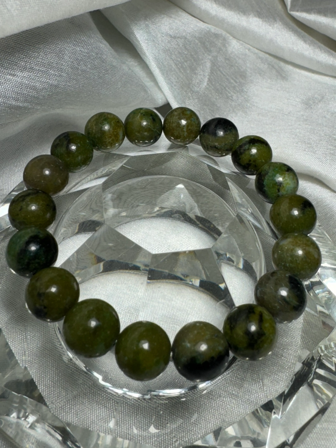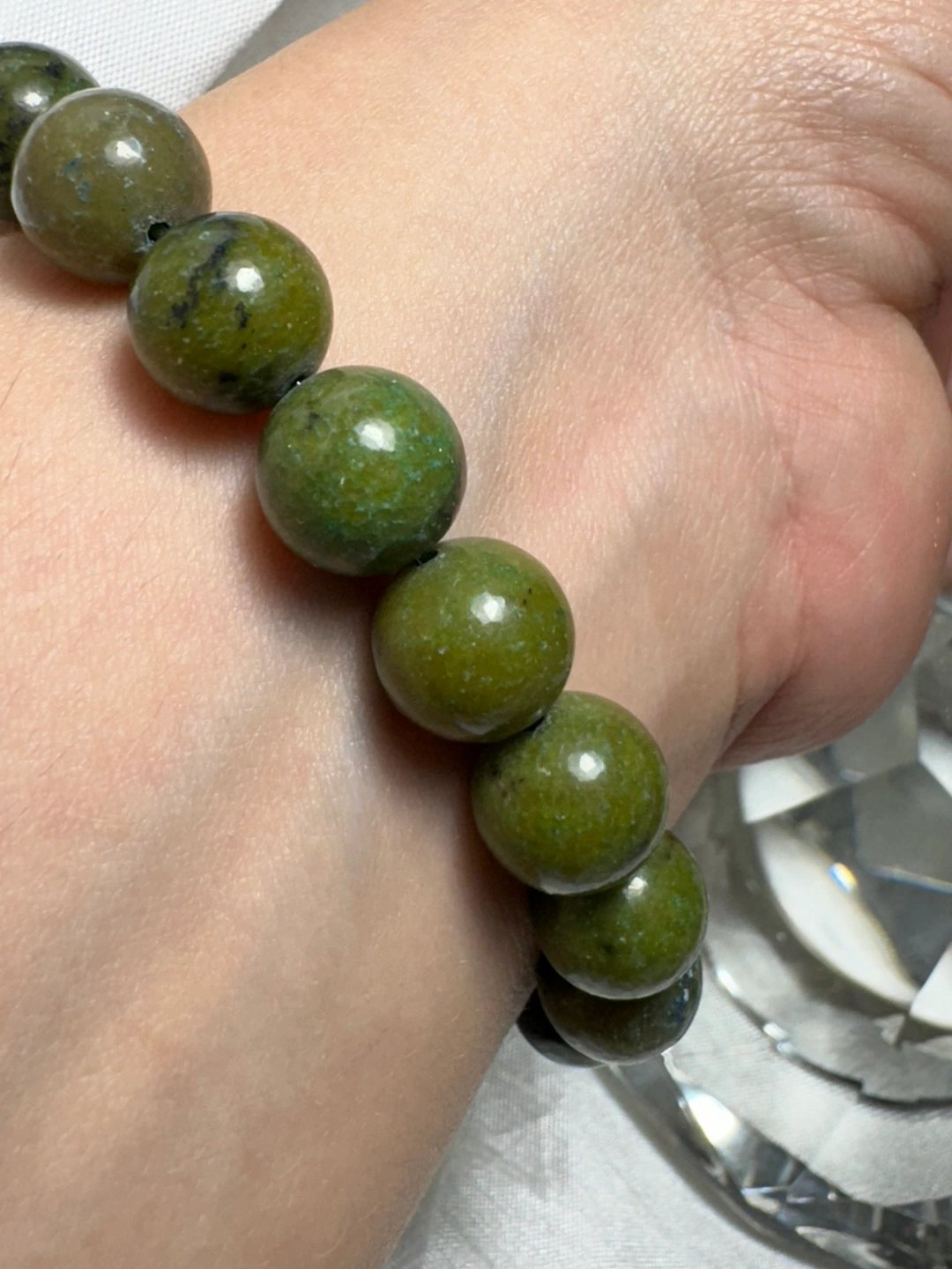 80A beautiful green jade bracelet with 8mm beads. This bracelet is stretchy and fits most wrists.