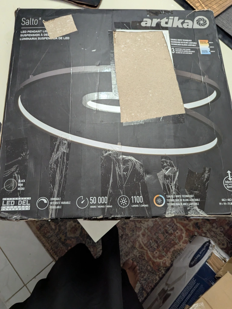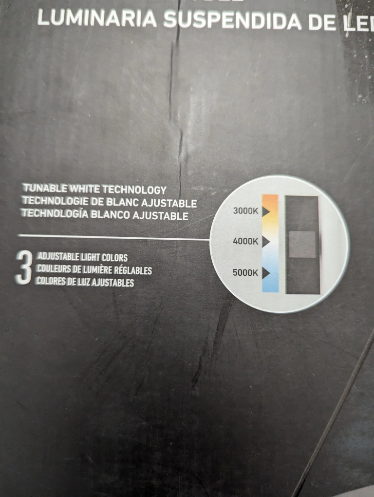 Black Matte Finish LED pendant light with integrated LED lights, adjustable height. OPEN BOX