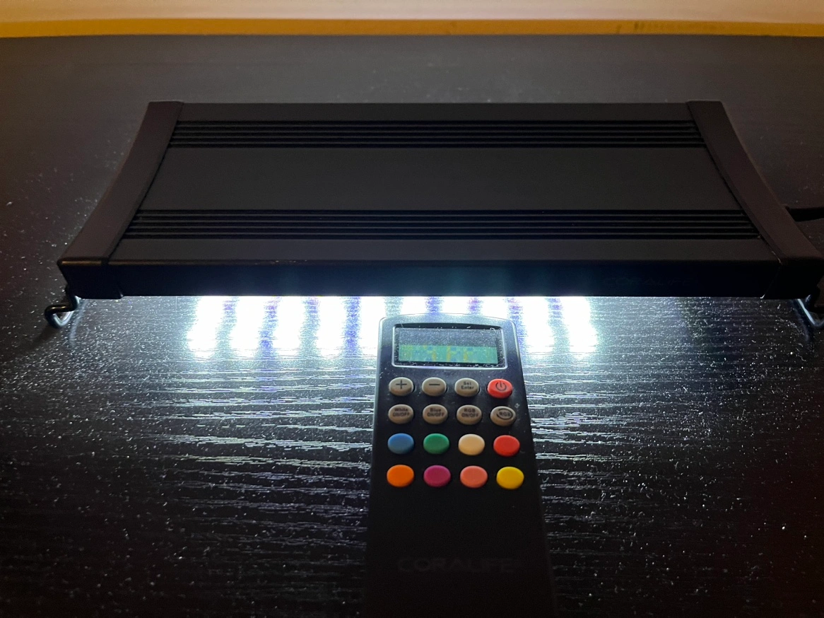This is a Coralife Seascape Mini LED Aqualight extends from 12"-18" size. It comes with a remote control. The light fixture is in great condition. I bought it beginning of year 2024 and after a few months I upgraded to a larger tank. So I don’t need it anymore.