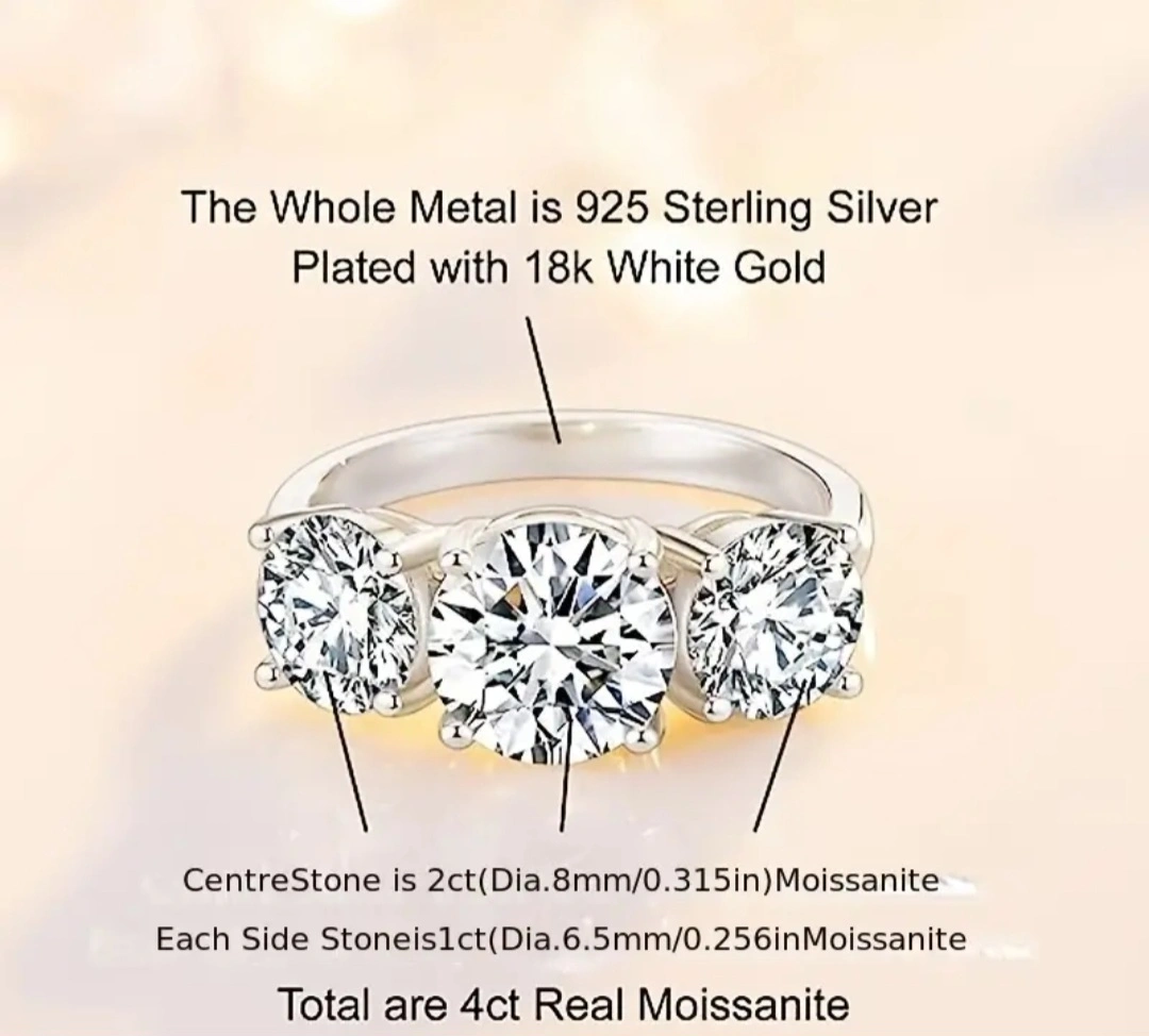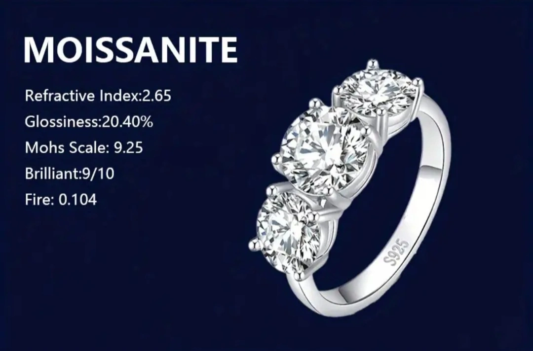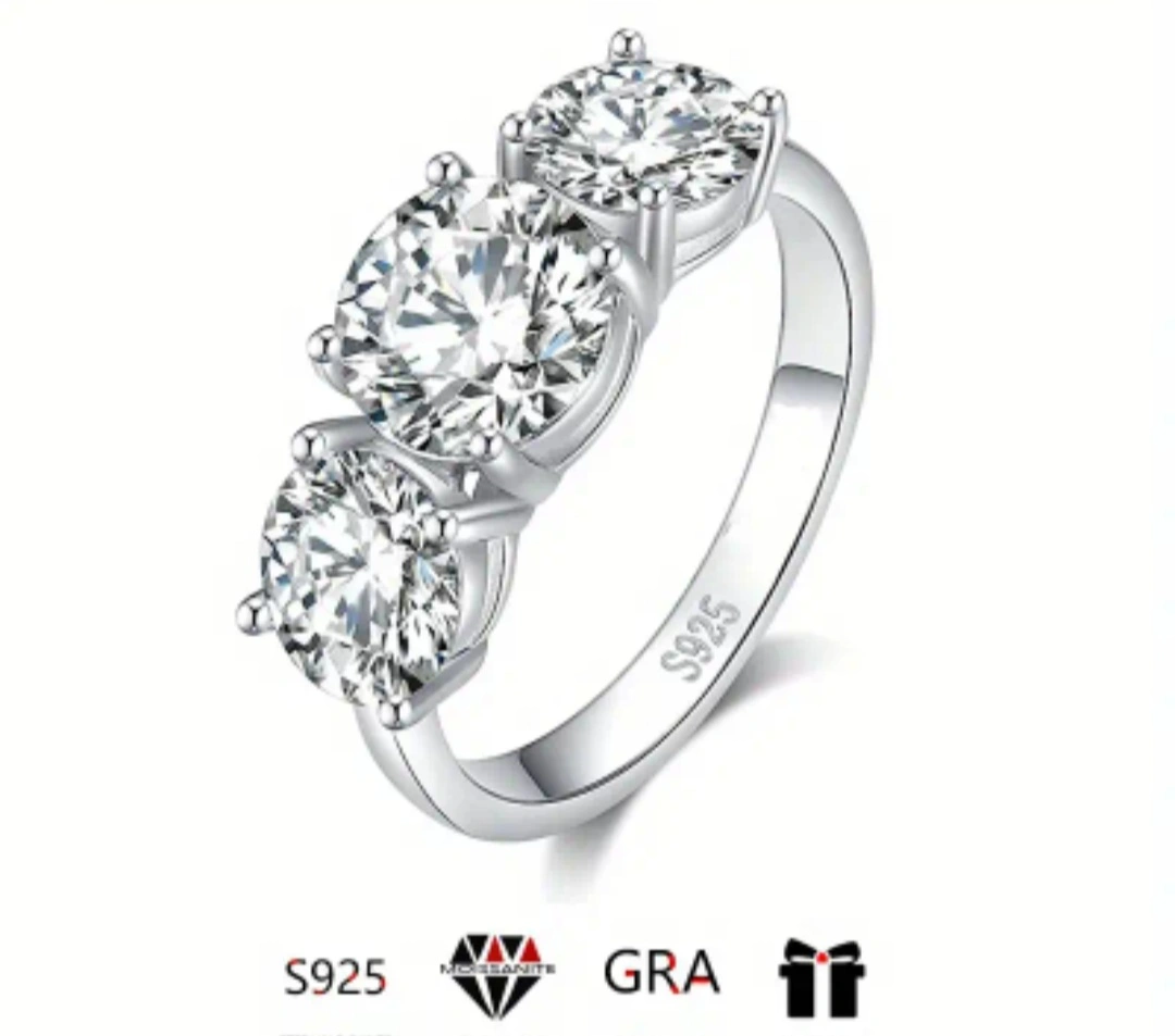 2ct Moissanite Promise Ring 925 Sterling Silver Engagement Wedding Jewelry For Female High Quality Christmas Gift For Your Lady With Gift Box Beautiful three stone ring with a GRA certificate of authenticity. Size 6