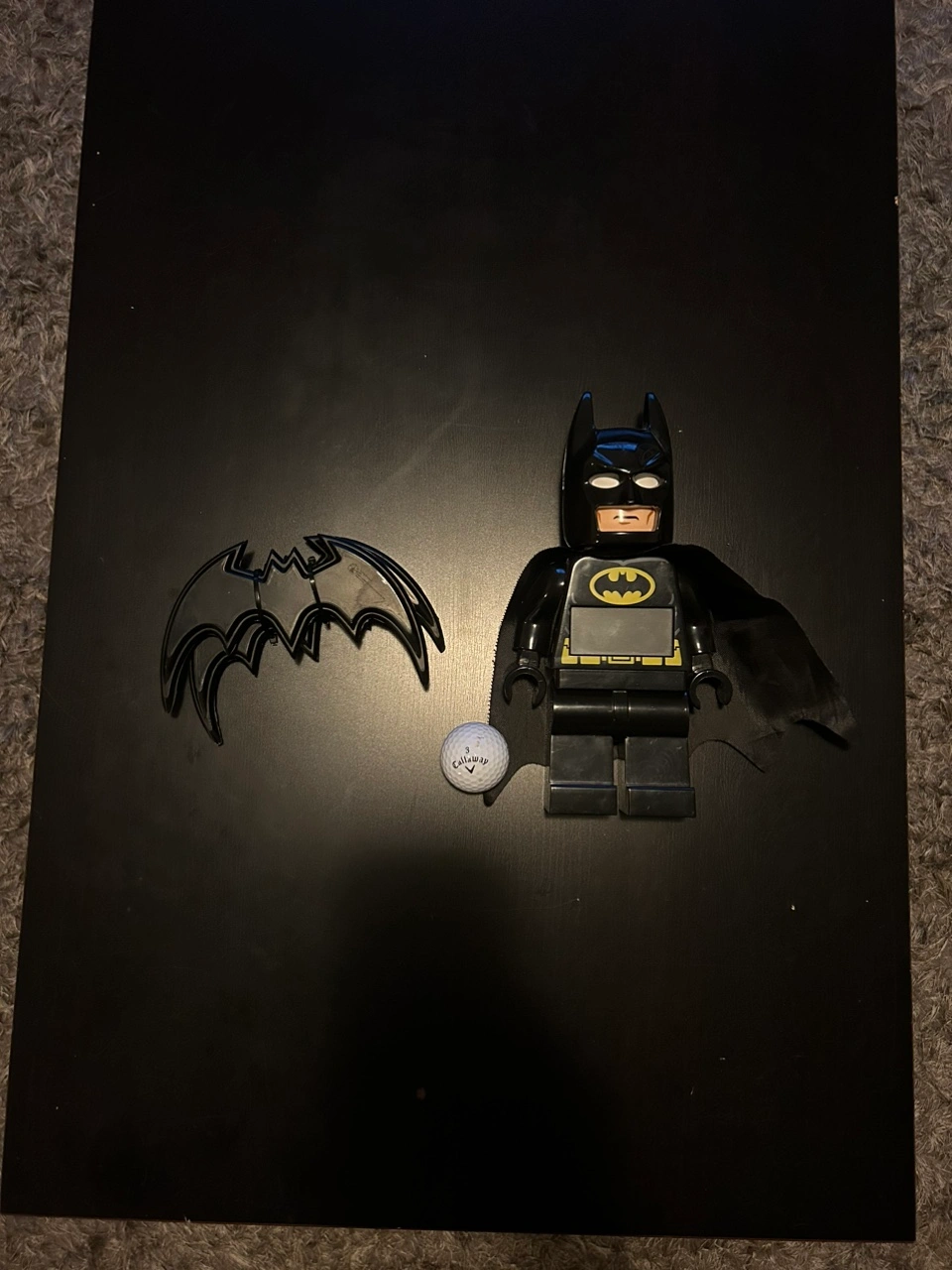 Lego Batman Clock with bat two foam throwing wings just cause they’re awesome and if you like the clock you get the bat-erangs. The golf ball is just for size reference.