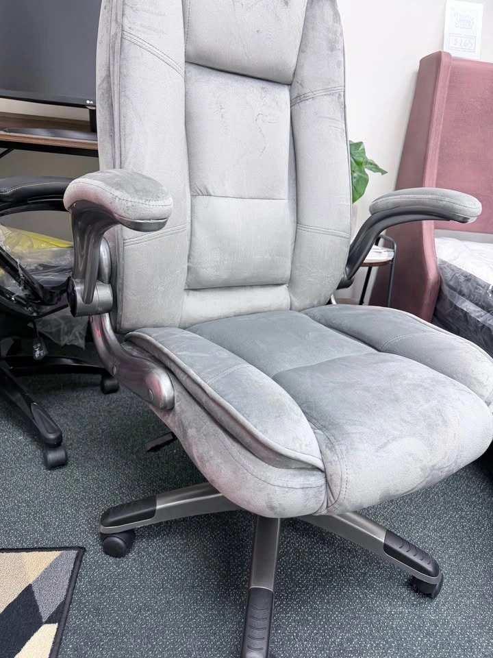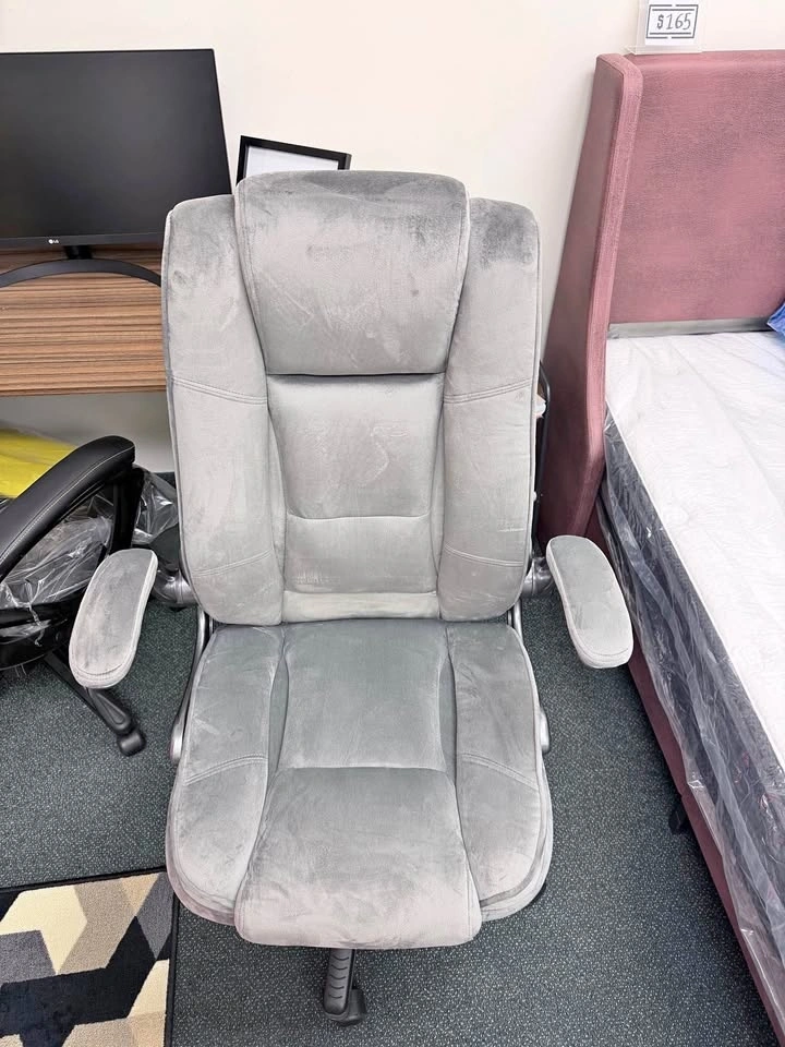 Brand New assembled Grey velvet executive style chair with cushioned back and seat. Pickup near Whiteoaks.