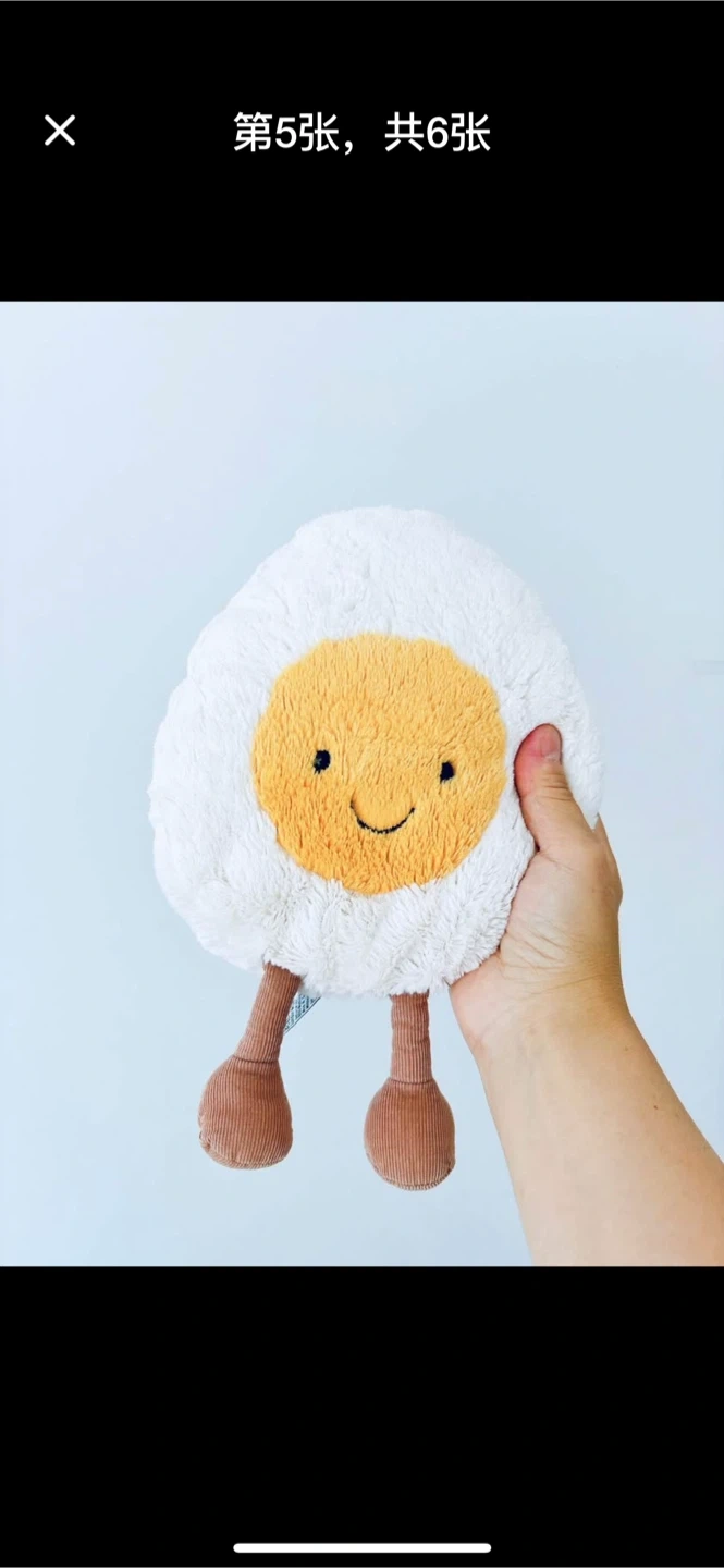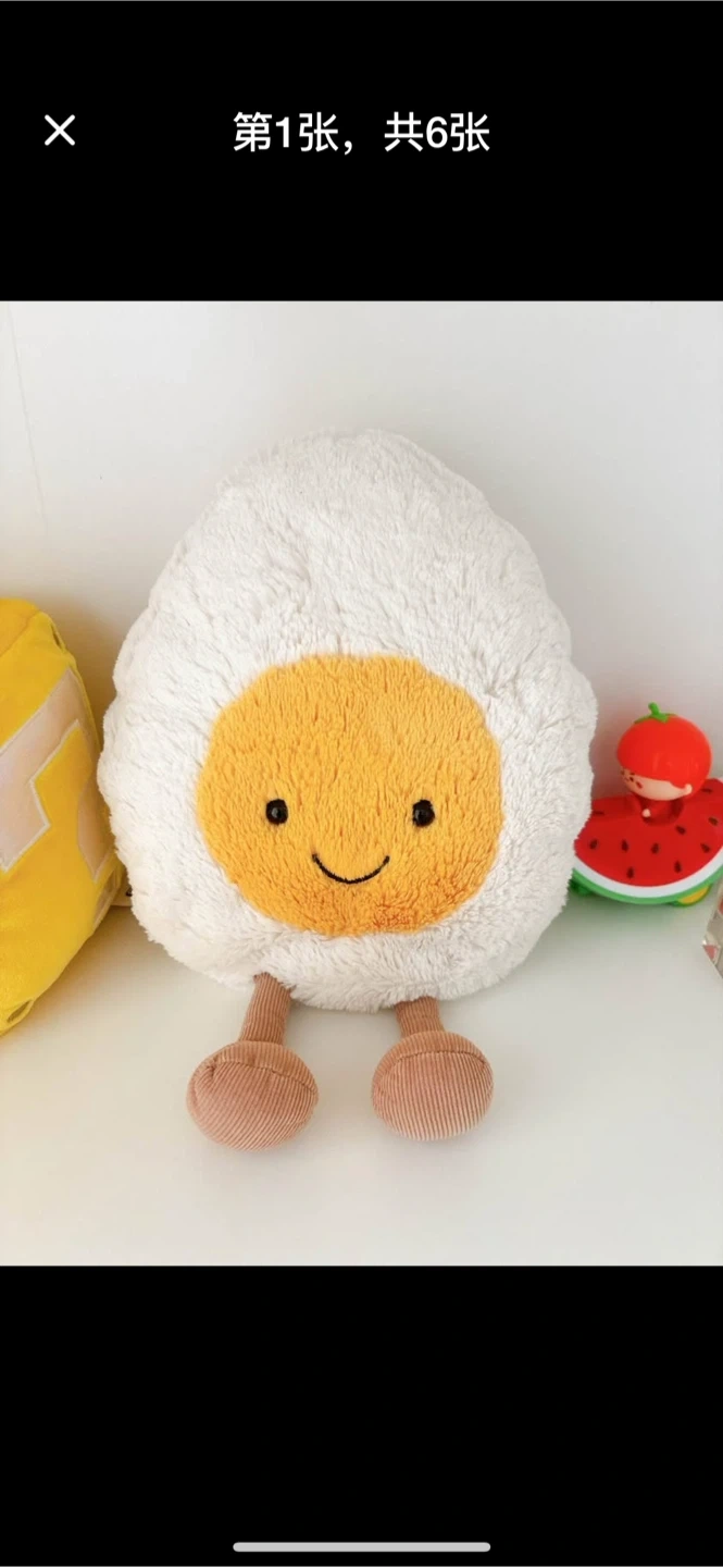 60Looking to sell this adorable Jellycat Amuseables Happy Boiled Egg plush toy! It's in great condition and ready to bring a smile to someone's face. The plush is soft and huggable, perfect for kids and adults alike
