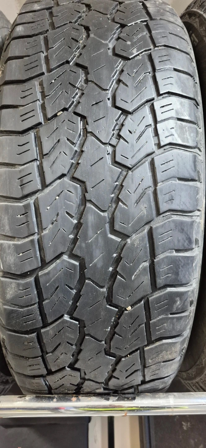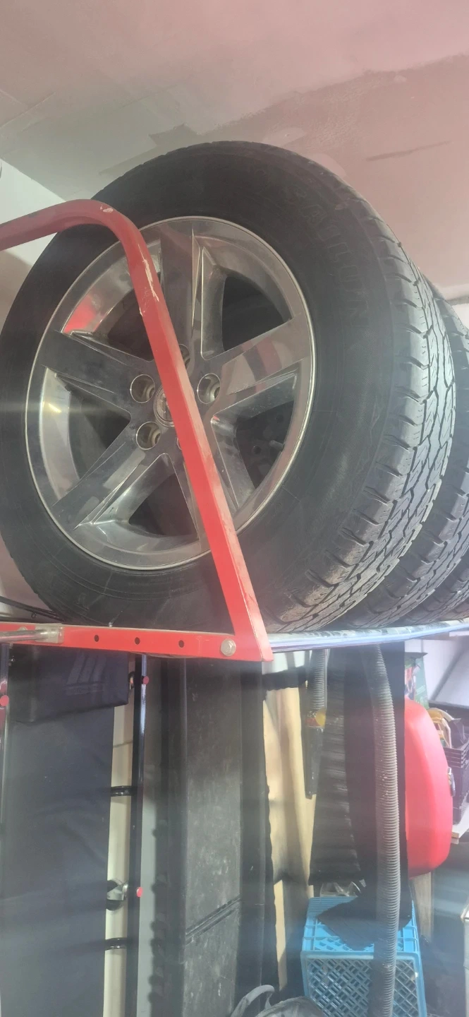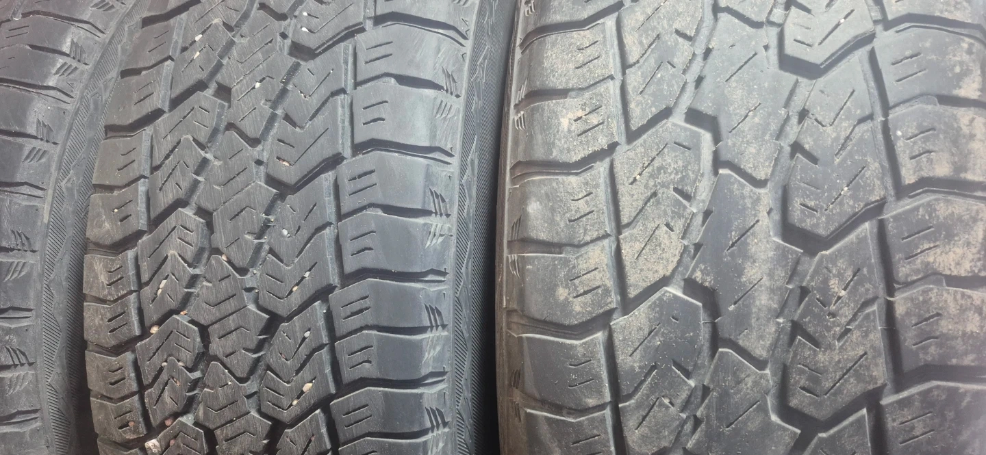 Four Sailun A T 10 ply tires mounted on Ram sport 20" rims. These tires are in good condition and ready for the road. The rims have a five-spoke design.